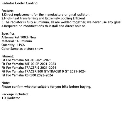 ラジエーター冷却エンジンクーラー ヤマハ MT-09/SP TRACER 9 XSR900 21-24用