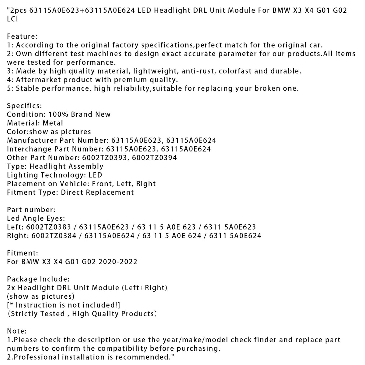2個 63115A0E623+63115A0E624 LEDヘッドライトDRLユニットモジュール BMW X3 X4 G01 G02 LCIに適合