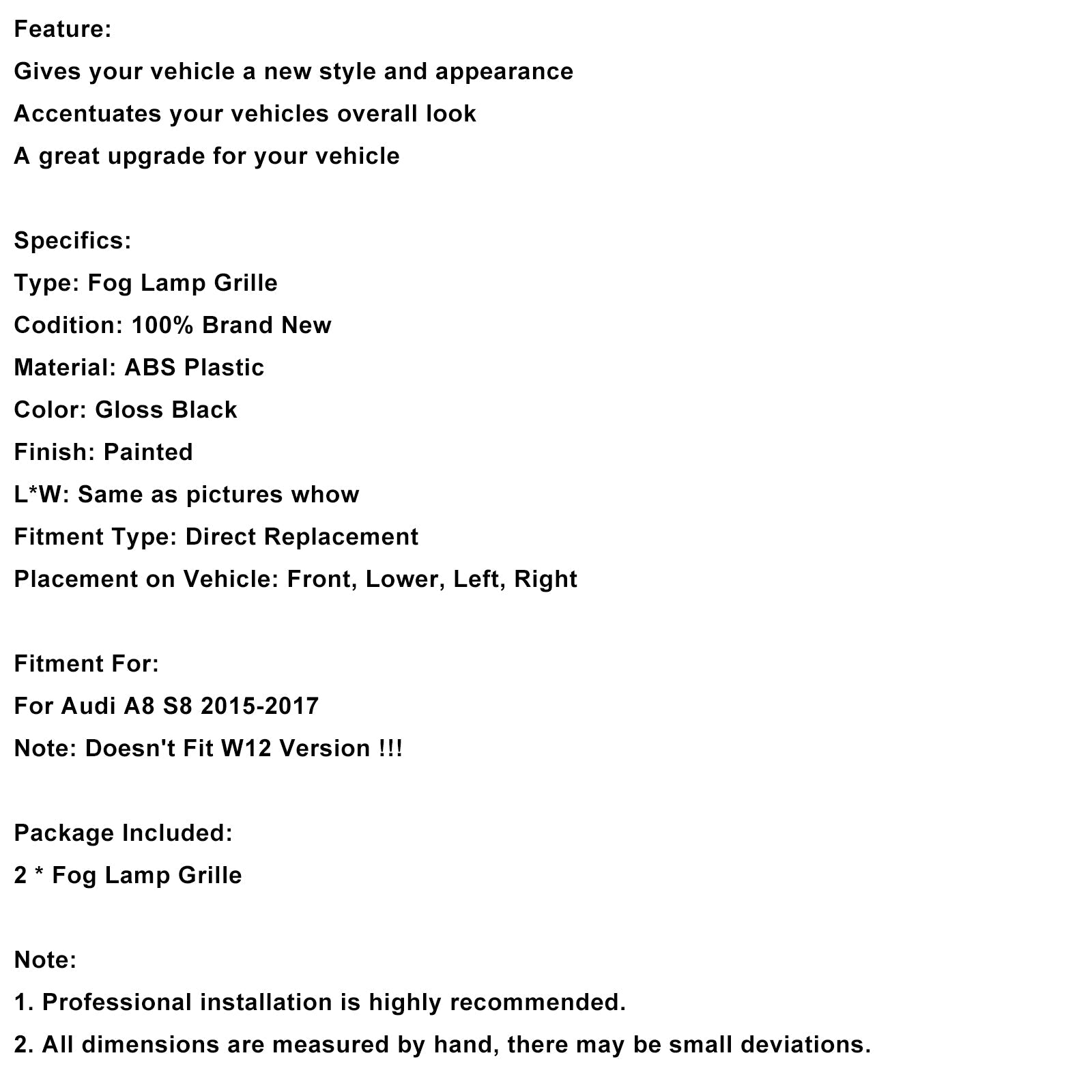 Audi A8 S8 2015-2017用 ブラックフロントフォググリルグリルライトカバー2個