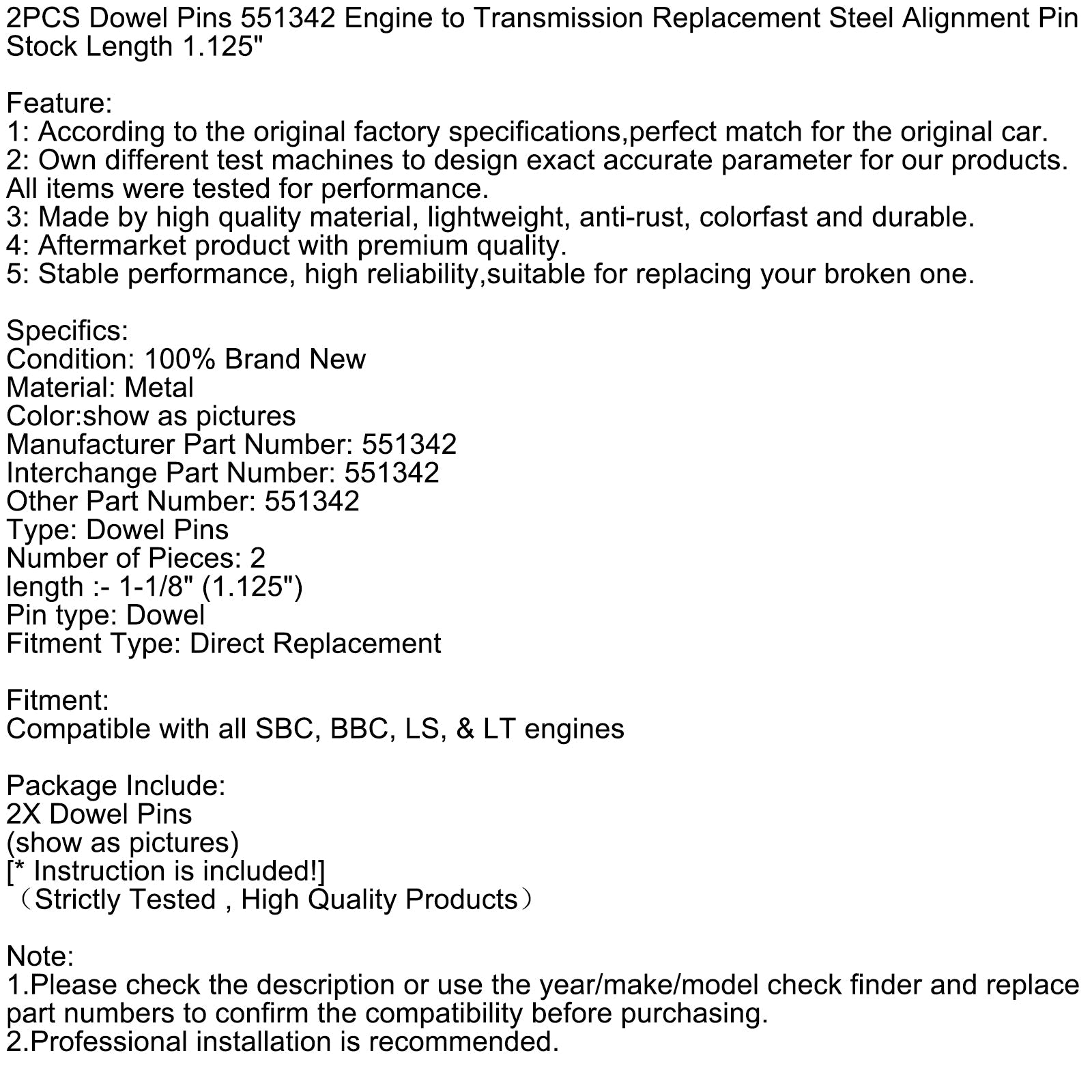 2PCS ダボピン 551342 エンジンからトランスミッションへの交換用スチールアライメントピン ストック長さ 1.125インチ