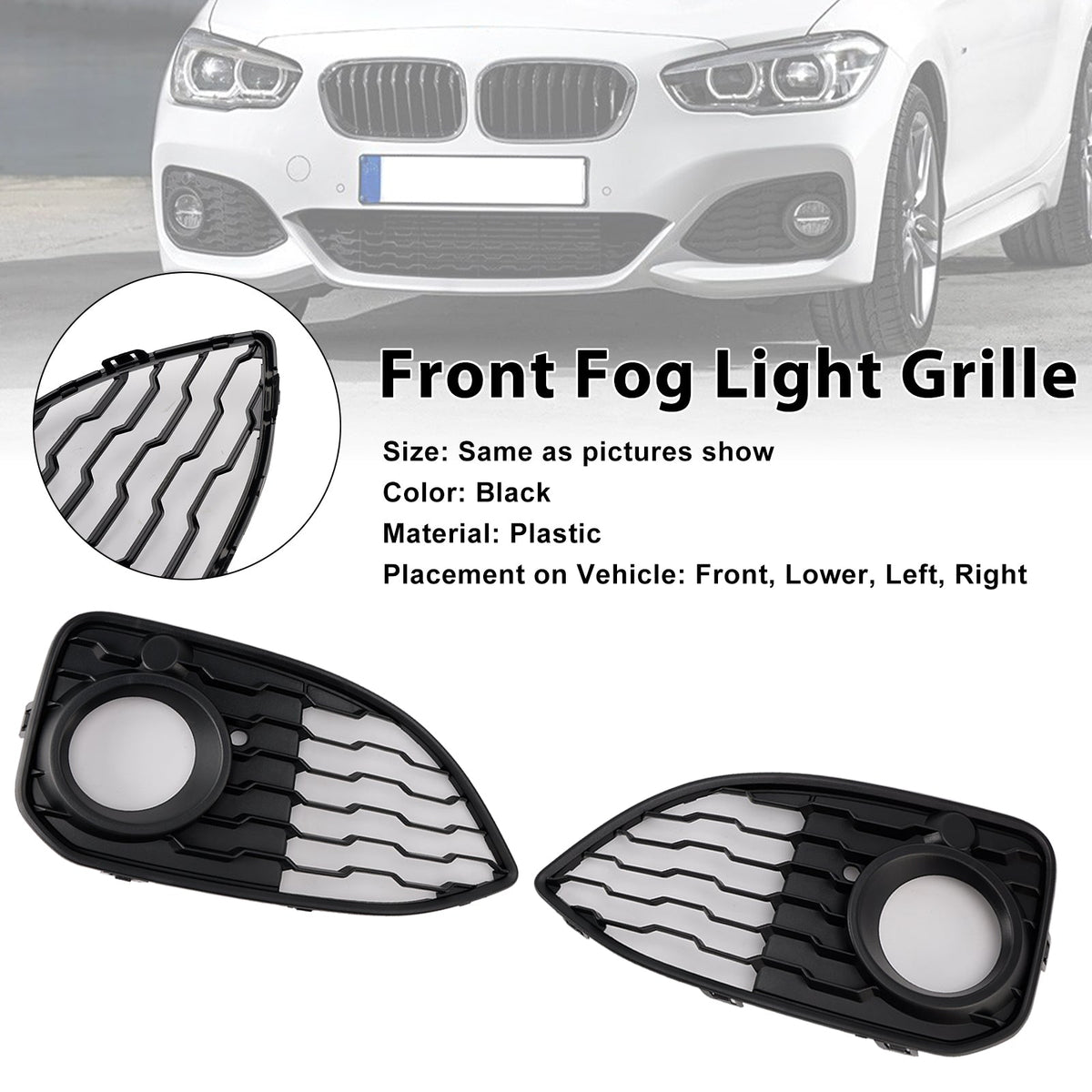 フォグランプカバーグリル 2個 BMW 1シリーズ F20 F21 LCI Mスポーツ 2015-2019に適合
