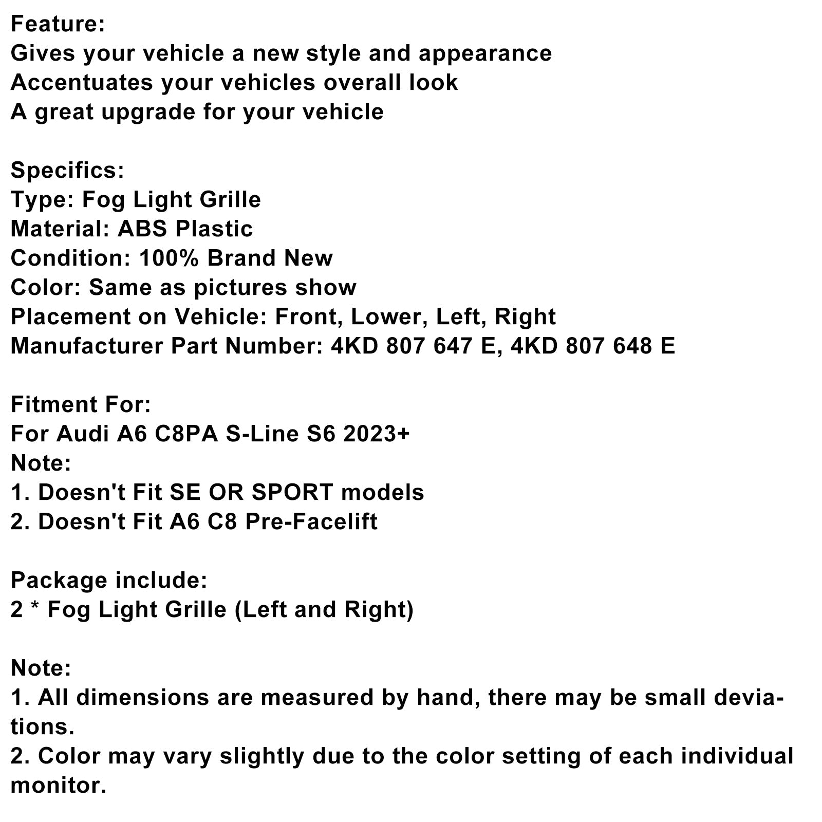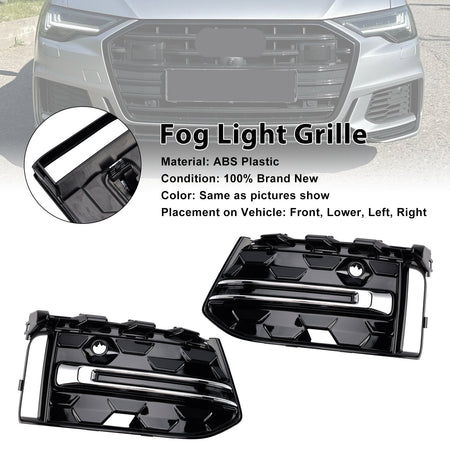 フロントバンパーフォグライトグリルトリム 2個入り Audi A6L C8PA 2023+ ブラッククローム