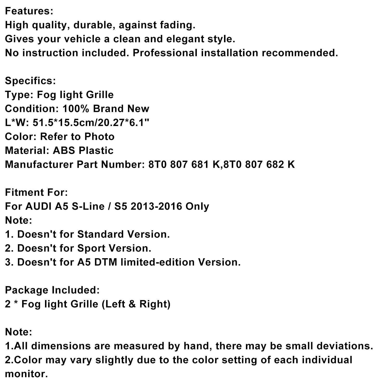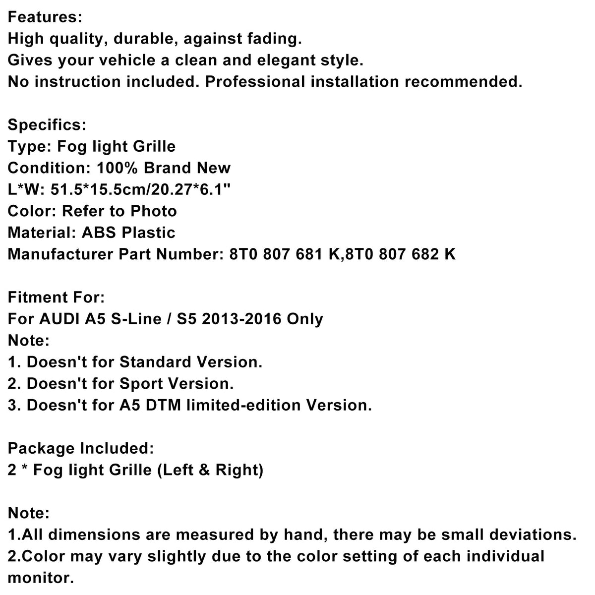 フロントフォグランプ ブラックグリル 2個セット AUDI A5 S-Line S5 2013-2016に適合