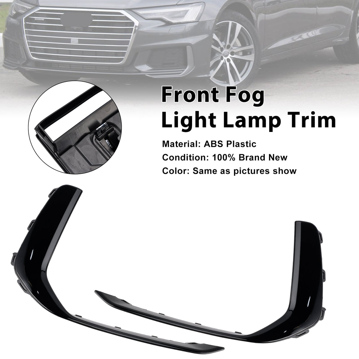 アウディ A6 C8 S-Line S6 2019-2023 用 フロントフォグランプ ランプトリム 2個入り ブラック