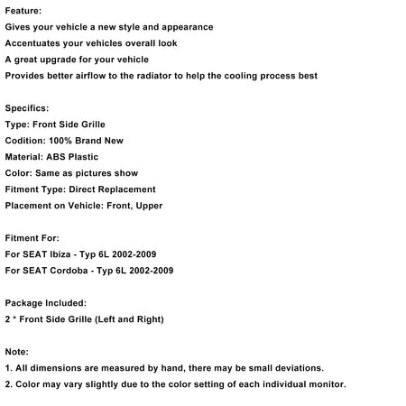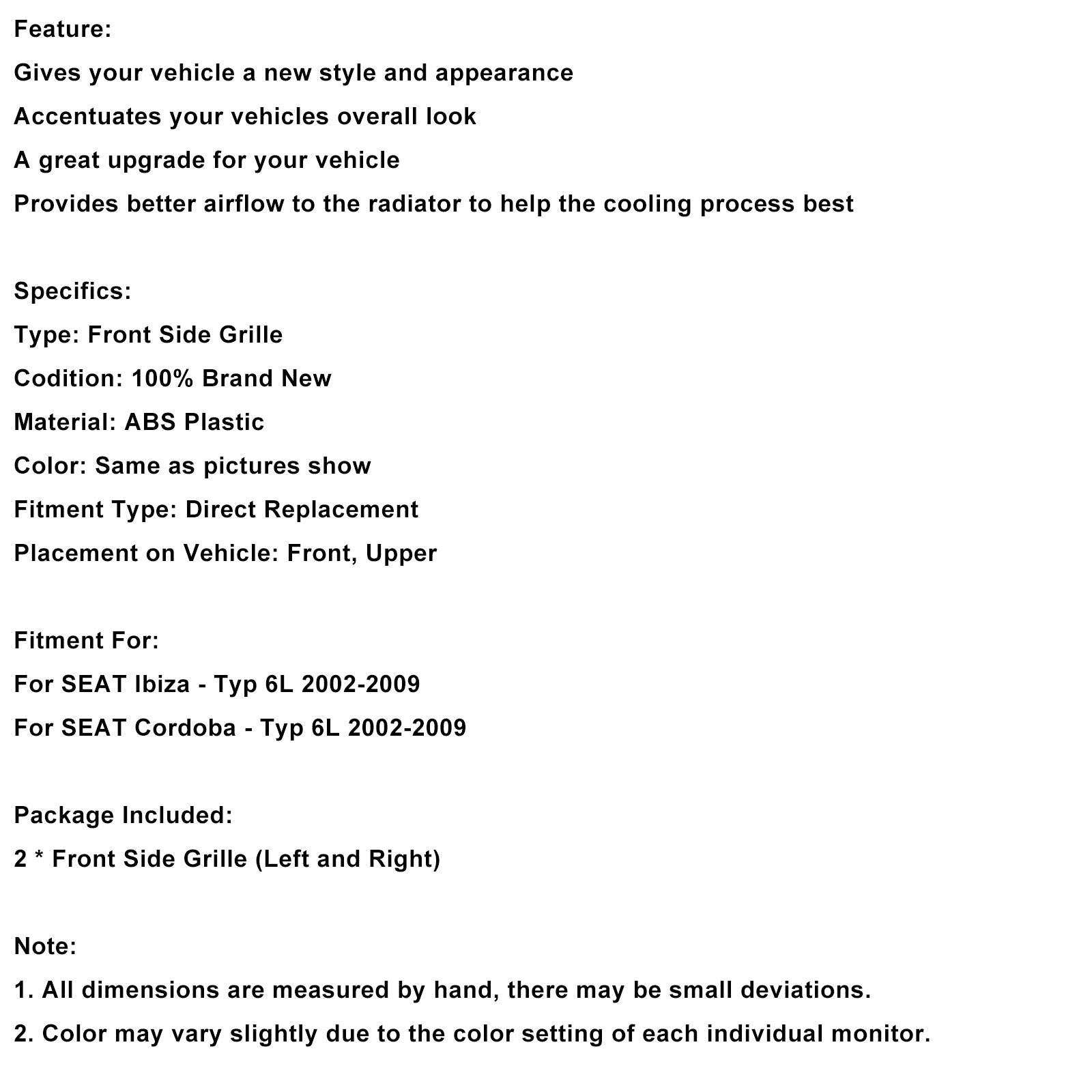 2PCS ハニカムフロントグリル シートイビサ コルドバ 6L 2002-2009 FRに適合
