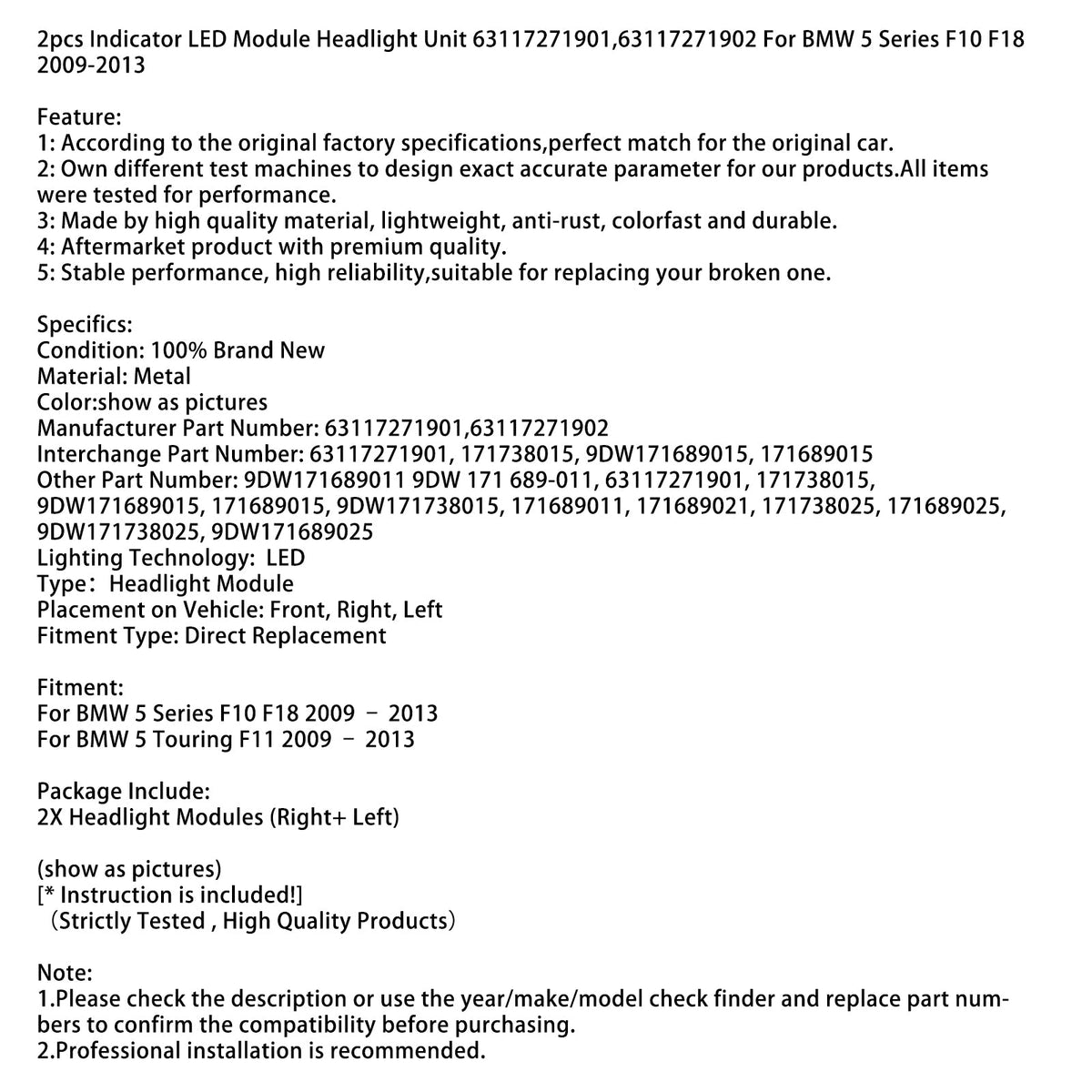 2個インジケーターLEDモジュールヘッドライトユニット BMW 5シリーズ F10 F18 2009-2013 63117271901、63117271902に適合