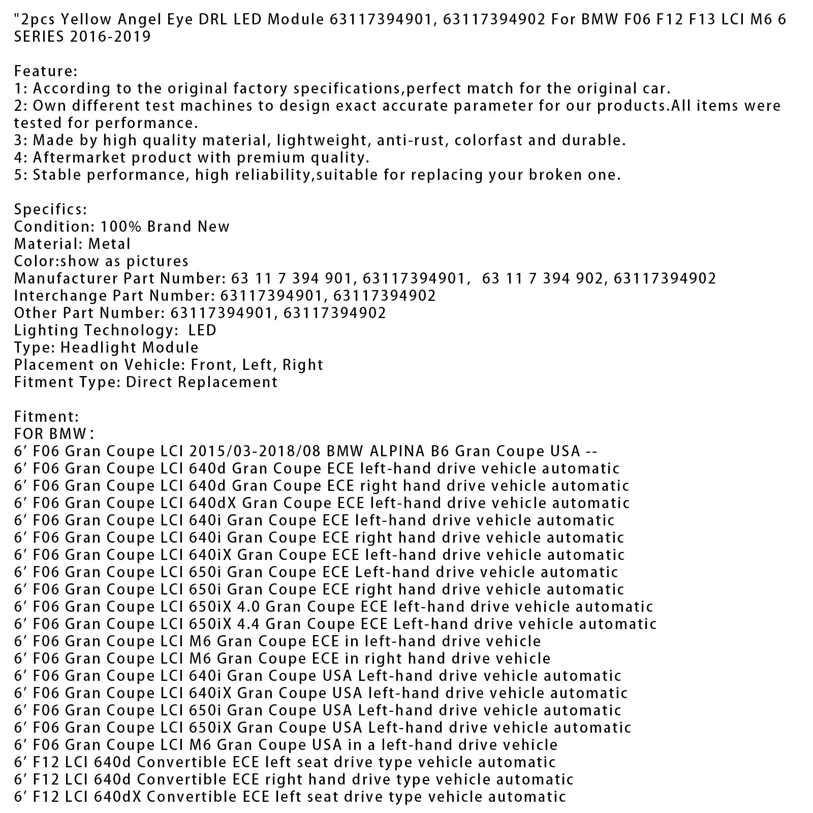 2個 イエロー エンジェルアイ DRL LED モジュール 63117394901、63117394902 BMW F06 F12 F13 LCI M6 6シリーズ 2016-2019用