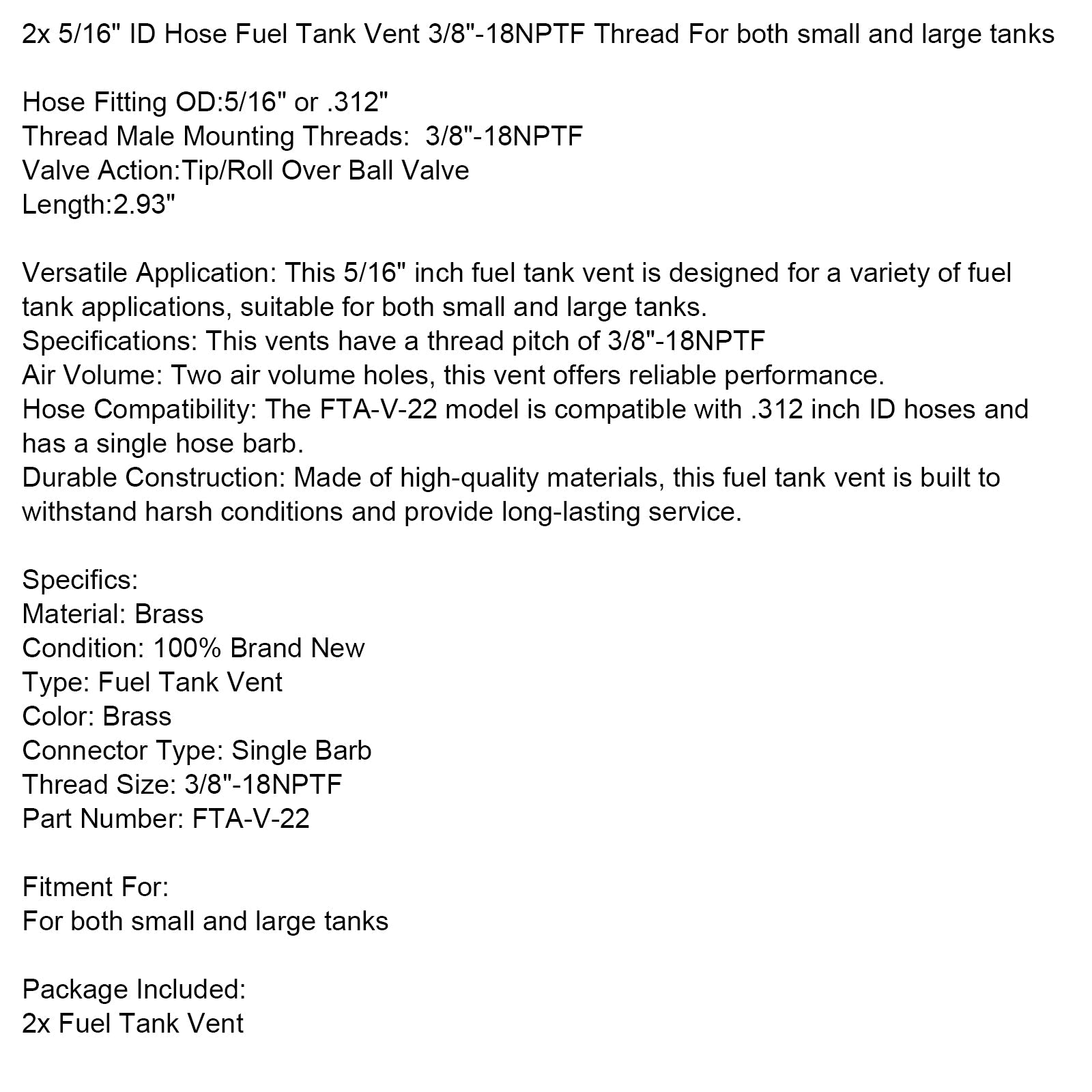 2x 5/16インチ ID ホース 燃料タンクベント 3/8インチ-18NPTF スレッド 小型タンクと大型タンクの両方に対応