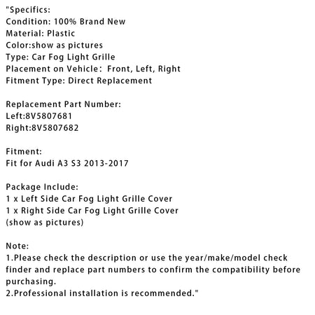 アウディ A3 S3 2013-2017 用 2個入り フロントバンパー フォグランプグリル