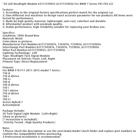 2X LEDヘッドライトモジュール 63117339055 63117339056 BMW 7シリーズ F01 F02 LCI用