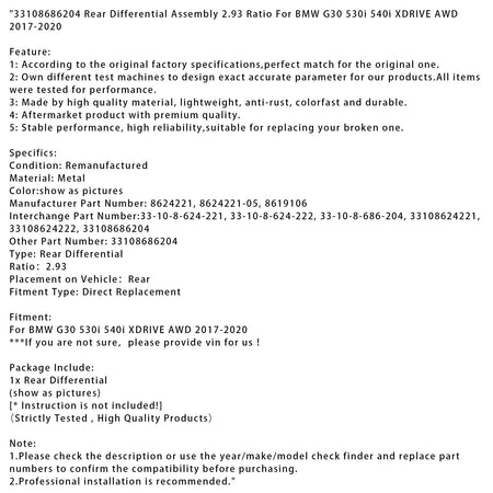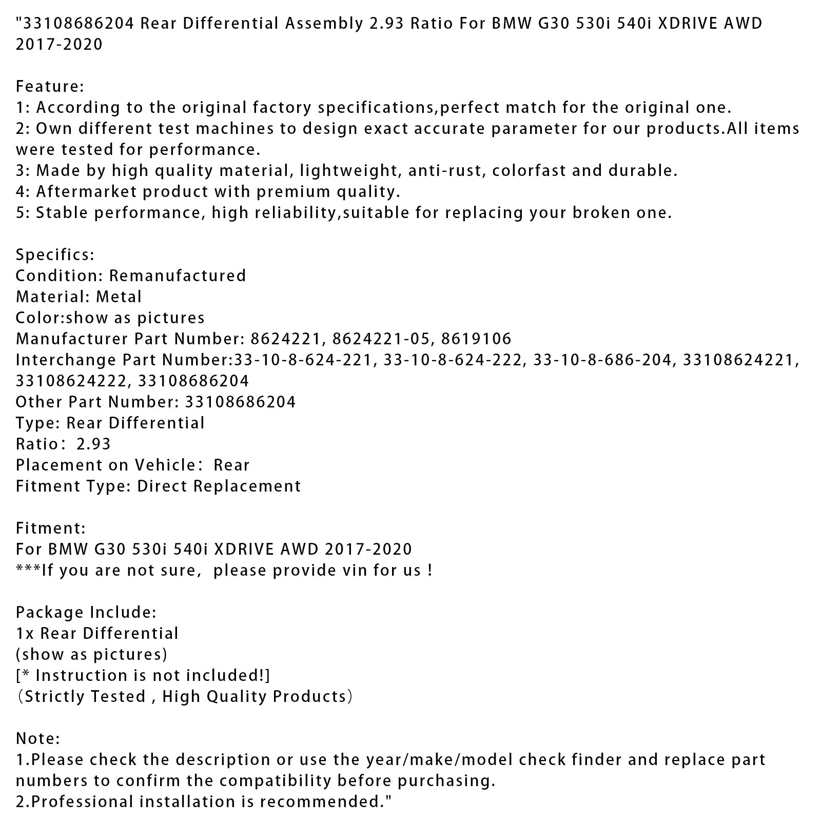 33108686204 リアディファレンシャルアセンブリ 2.93 比率 BMW G30 530i 540i XDRIVE AWD 2017-2020用