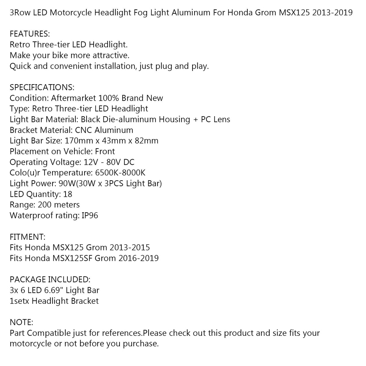 3列 LED オートバイヘッドライト フォグライト アルミニウム ホンダ グロム MSX125 2013-2019 に適合