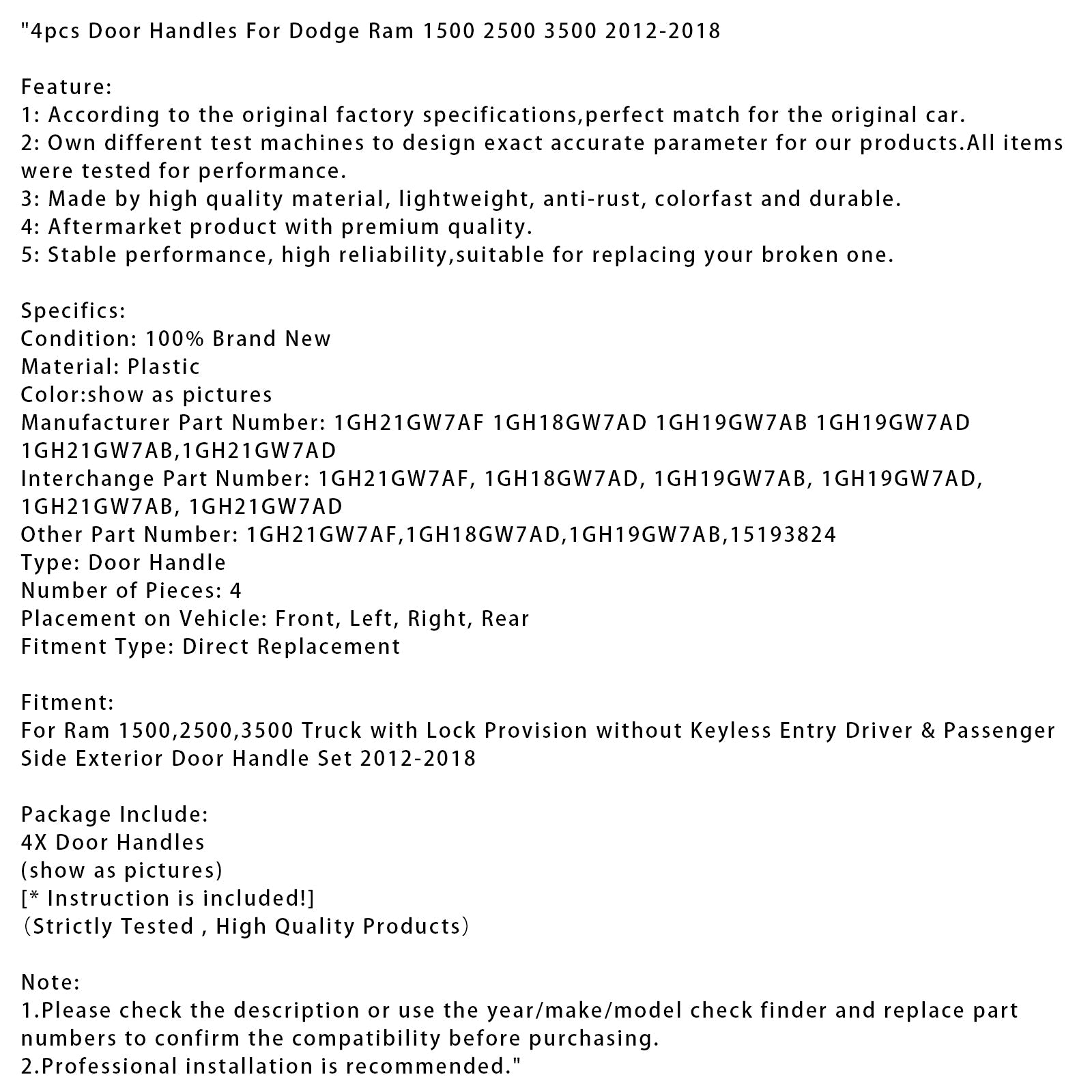 ダッジ・ラム 1500 2500 3500 2012-2018用ドアハンドル4個