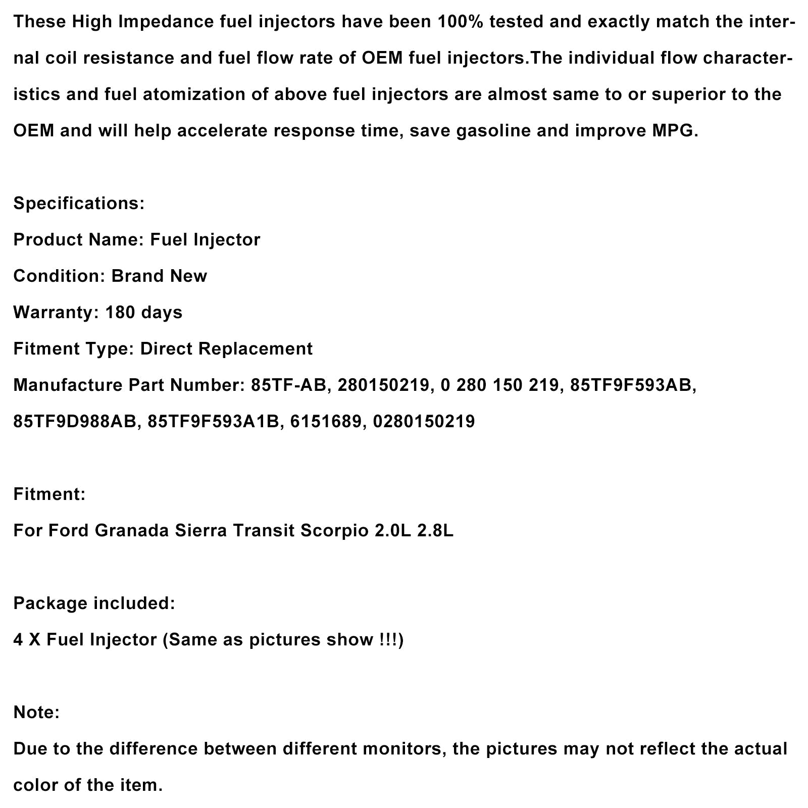 4個燃料インジェクター 0280150219 フォード グラナダ シエラ トランジット スコーピオ 2.0 2.8に適合