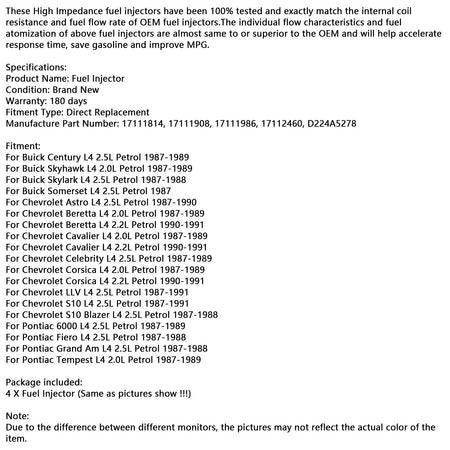 シボレー ベレッタ L4 2.0L ガソリン 1987-1989 用