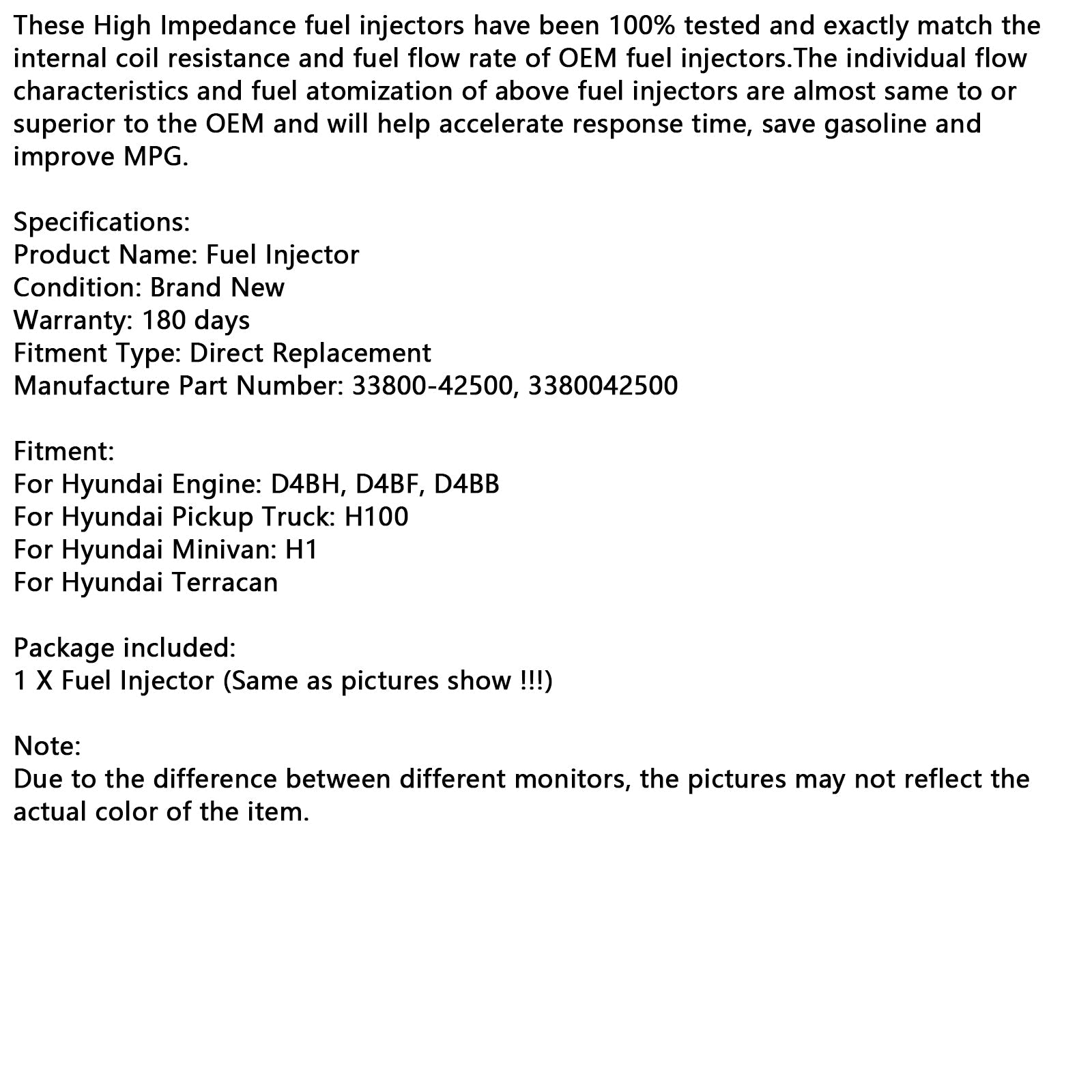 4PCS 燃料インジェクター 33800-42500 ヒュンダイ D4BH D4BF ピックアップ H100 ミニバン H1 に適合