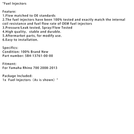 5B4-13761-00-00 燃料インジェクター ヤマハ ライノ 700 2008-2013 に適合