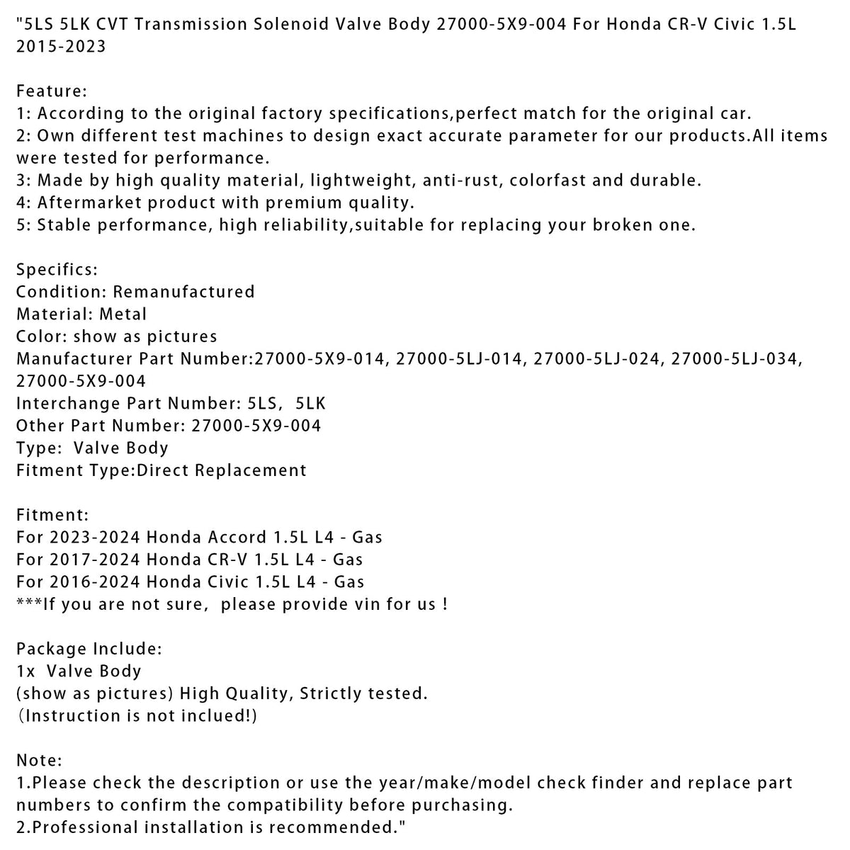 5LS 5LK CVTトランスミッションソレノイドバルブボディ 27000-5X9-004 ホンダCR-Vシビック1.5L 2015-2023に適合