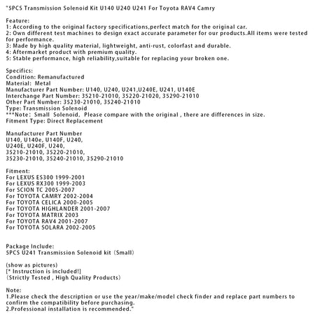 トヨタ RAV4 カムリ用 トランスミッションソレノイドキット U140 U240 U241 5個