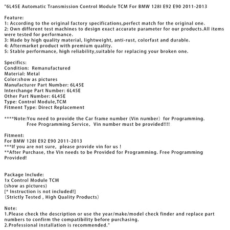 6L45E オートマチックトランスミッションコントロールモジュール TCM BMW 128I E92 E90 2011-2013用