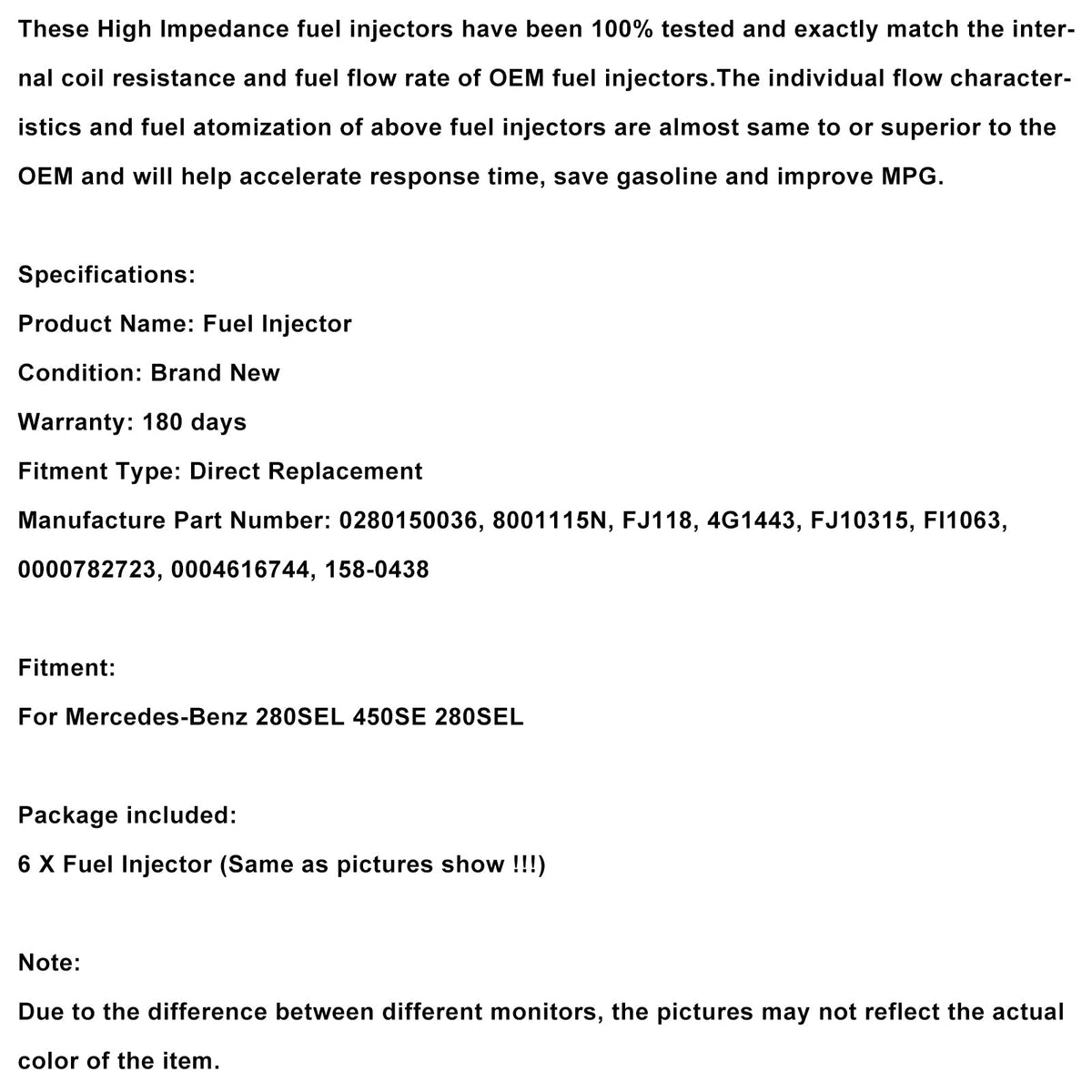 6PCS 燃料インジェクター 0280150036 メルセデスベンツ 280SEL 450SE 280SEL 4.5L V8に適合
