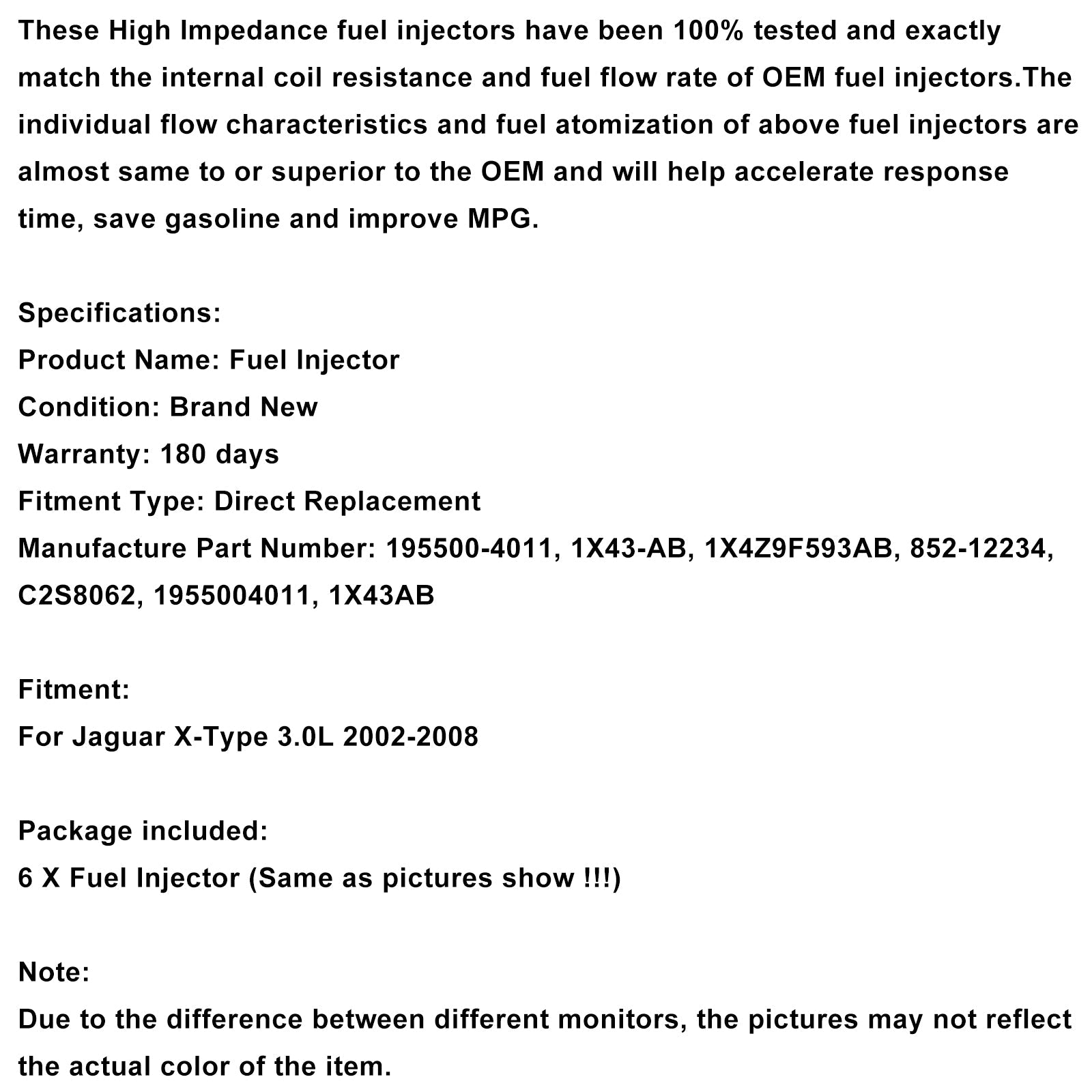 6PCS 燃料インジェクター 1X43-AB ジャガー Xタイプ 3.0L 2002-2008 V6 2.5L 1955004011に適合
