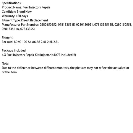 燃料インジェクター修理キット 6 個 (インジェクターは付属しません)