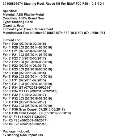 32106891974 ステアリングラック修理キット BMW F20 F30 1 2 3 4 X1用