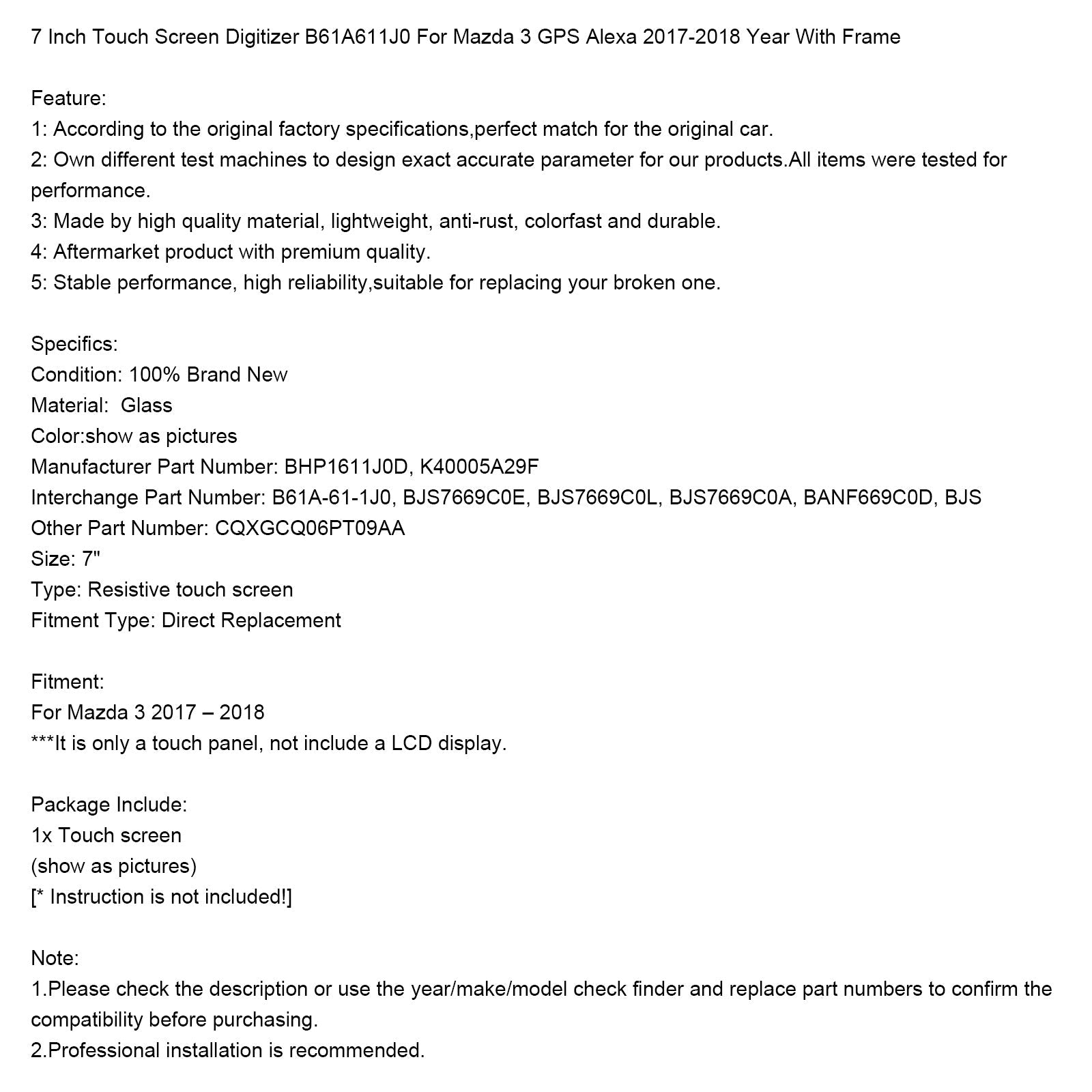 7インチ タッチスクリーン デジタイザー B61A611J0 マツダ 3 GPS Alexa 2017-2018 年式 フレーム付き