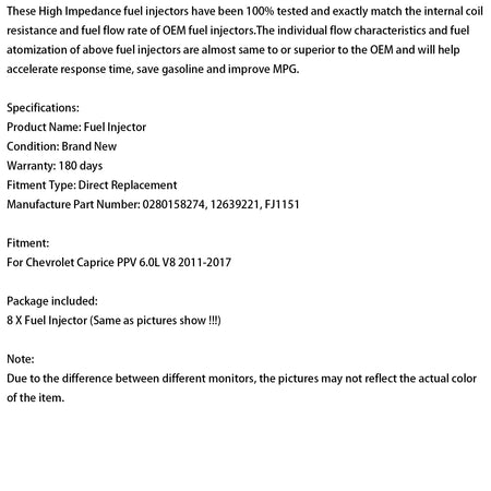 これらの高インピーダンス燃料インジェクターは 100% テスト済みで、OEM 燃料インジェクターの内部コイル抵抗および燃料流量と正確に一致します。上記の燃料インジェクターの個々のフロー特性および燃料の霧化は OEM とほぼ同じかそれ以上であり、応答時間の短縮、ガソリンの節約、MPG の向上に役立ちます。