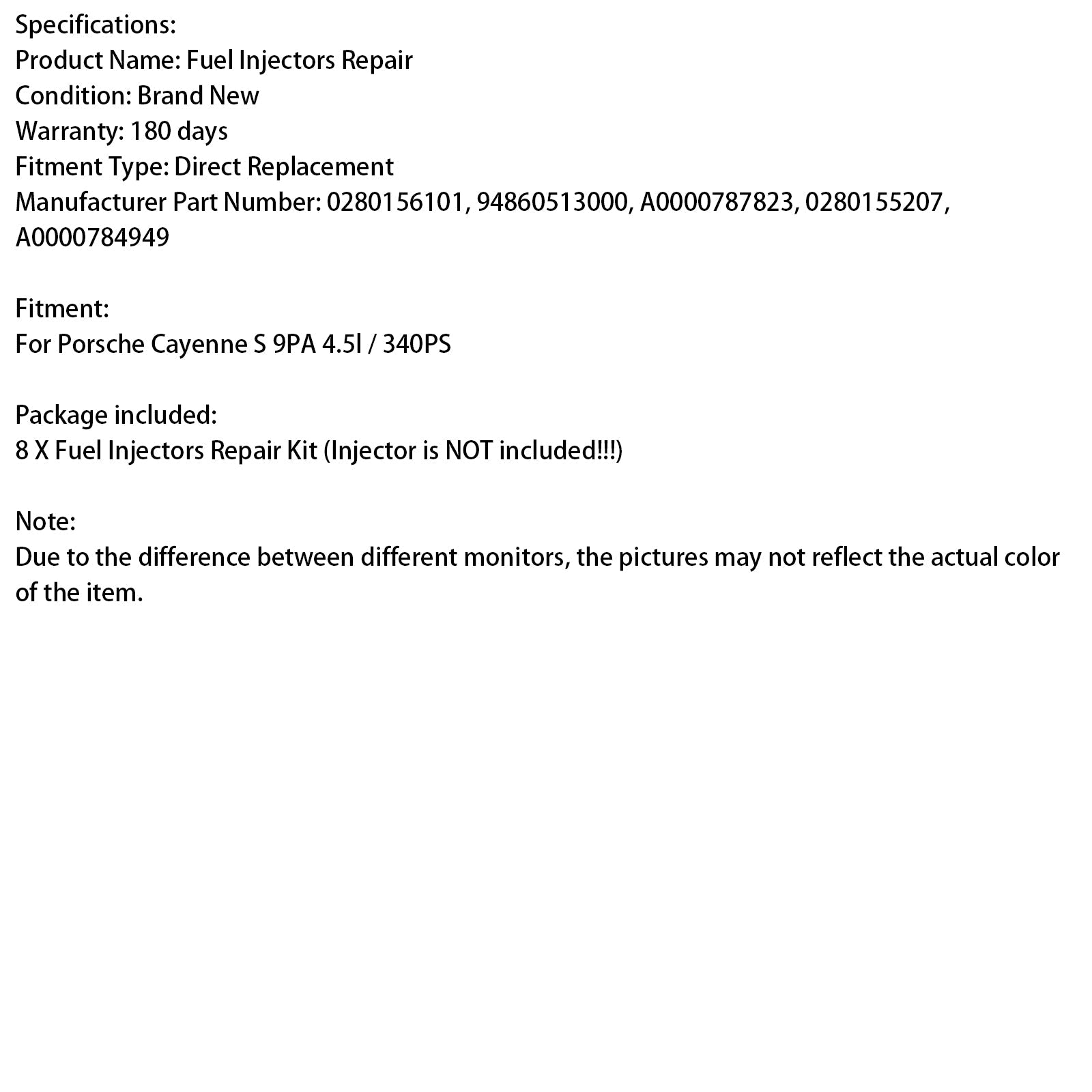 燃料インジェクター修理キット 8 個 (インジェクターは付属しません)