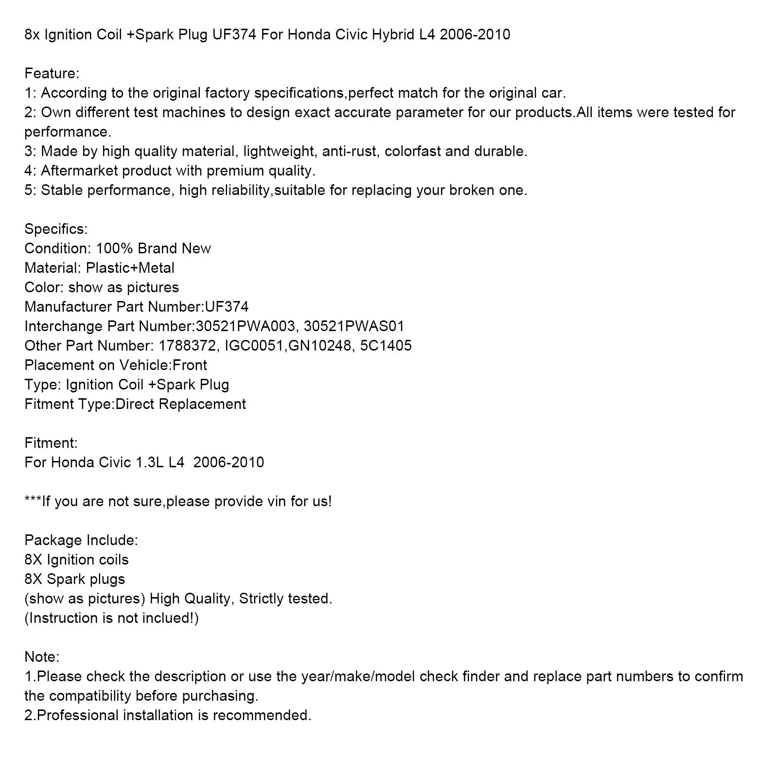 8x イグニッションコイル + スパークプラグ UF374 ホンダ シビック ハイブリッド L4 2006-2010 用