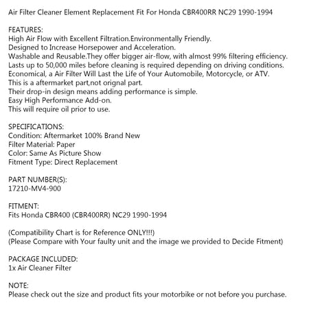 エアフィルタークリーナーエレメント交換用 ホンダ CBR400RR NC29 1990-1994 に適合