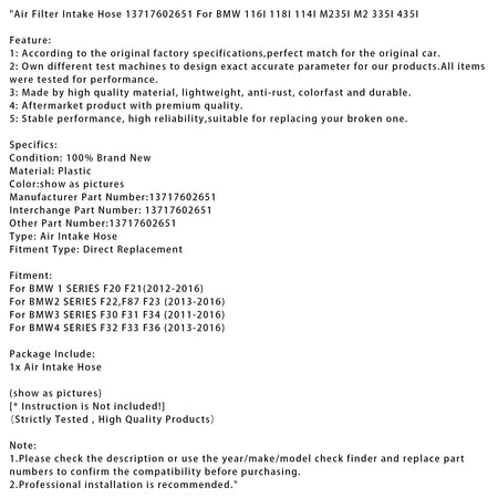 エアフィルター吸気ホース 13717602651 BMW 116I 118I 114I M235I M2 335I 435I用
