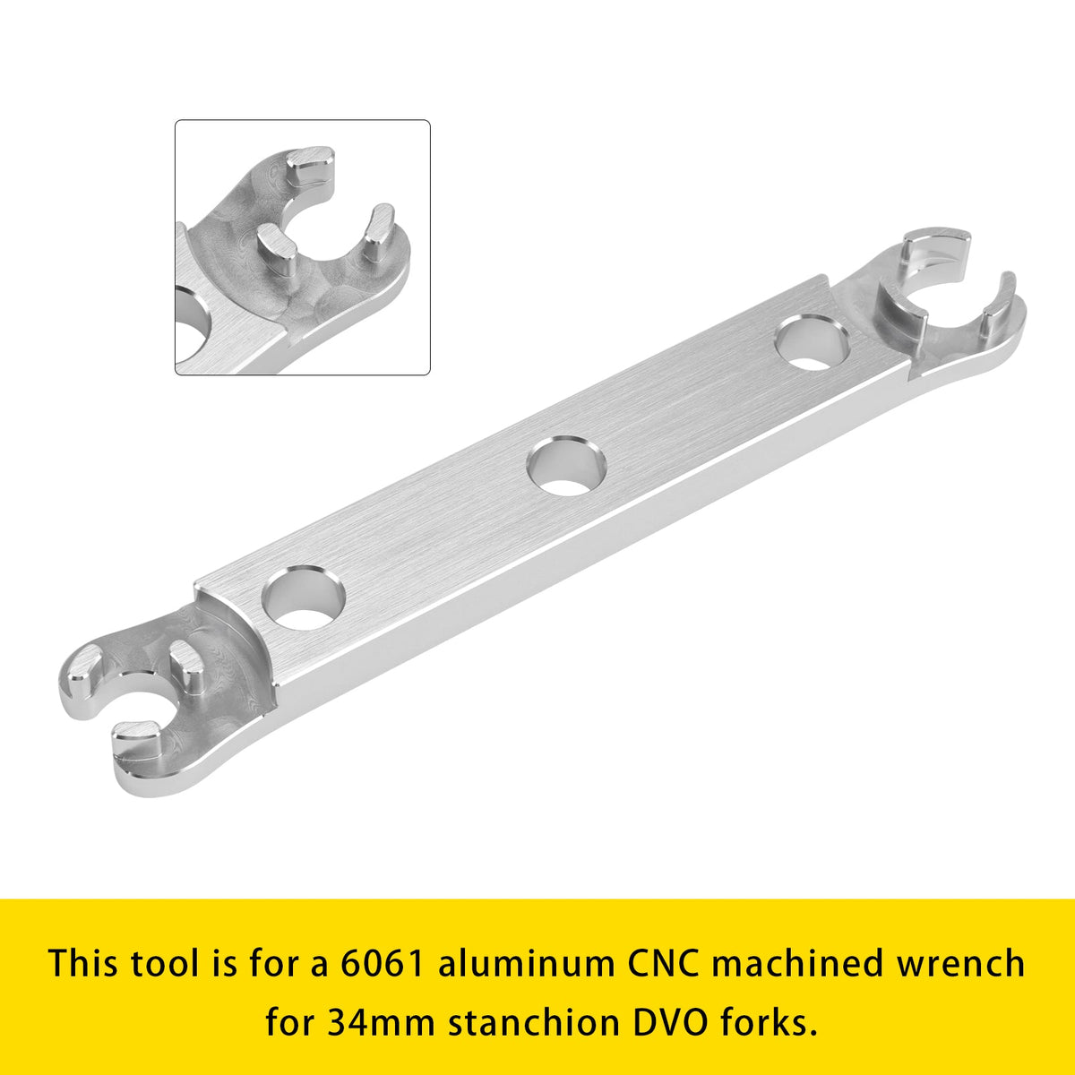 このツールは、34mm スタンション DVO フォーク用の 6061 アルミニウム CNC 機械加工レンチです。