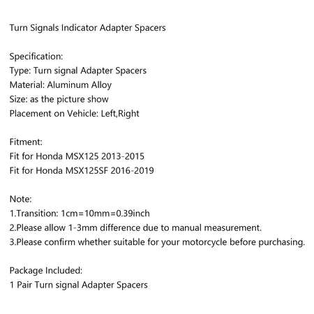 ホンダ MSX125 MSX125SF 汎用用アルミ製ターンシグナルインジケーターアダプタースペーサー