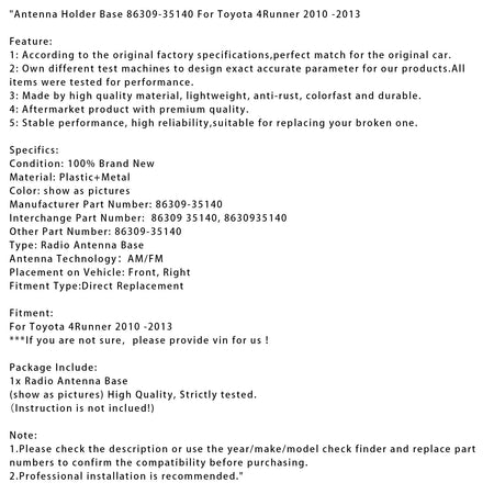 アンテナホルダーベース 86309-35140 トヨタ 4Runner 2010 -2013用