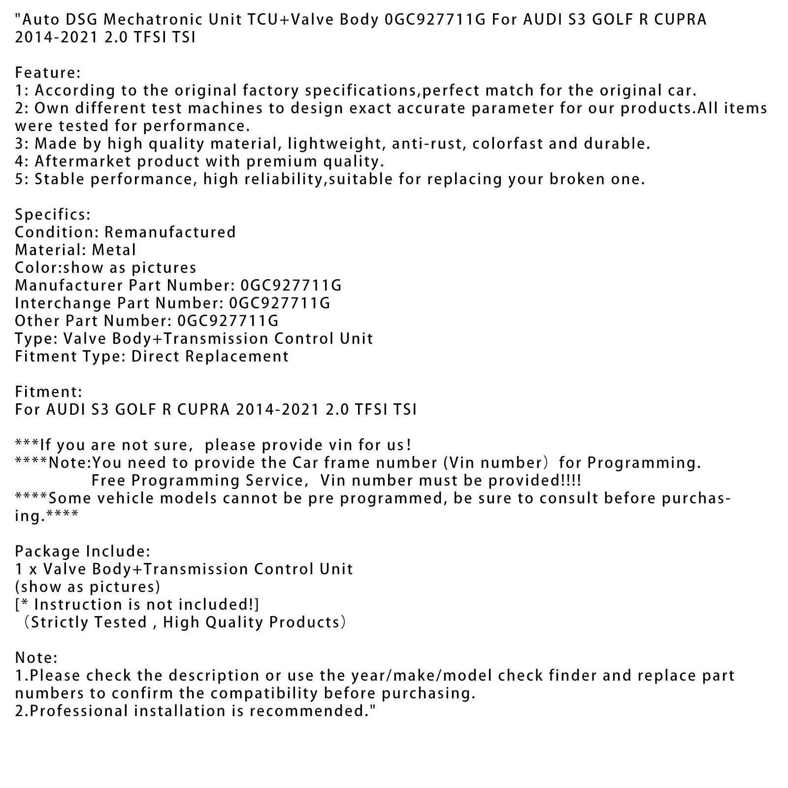 自動 DSG メカトロニックユニット TCU + バルブボディ 0GC927711G アウディ S3 ゴルフ R クプラ 2014-2021 2.0 TFSI TSI