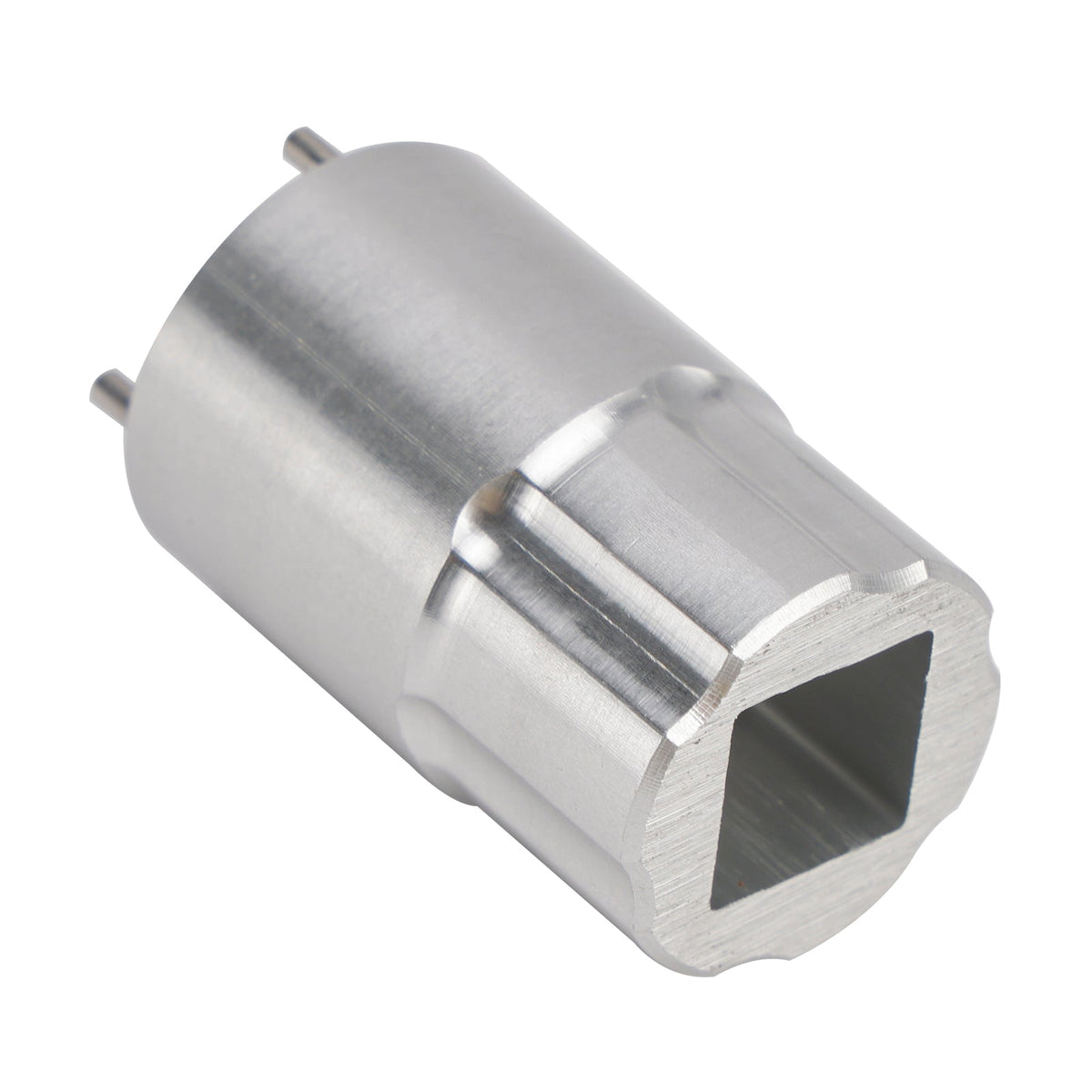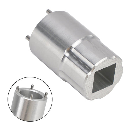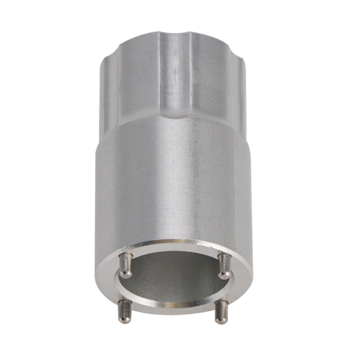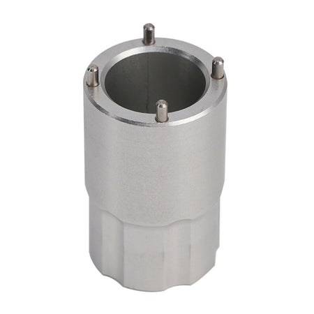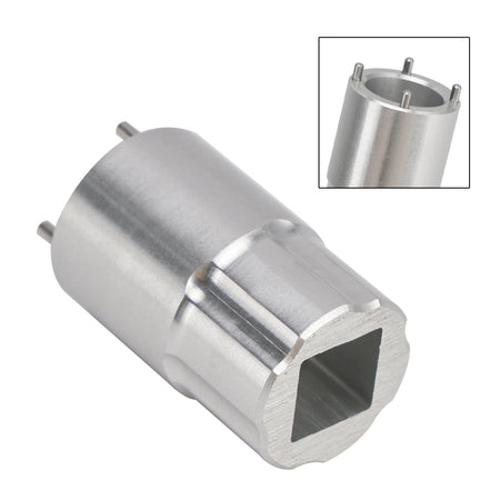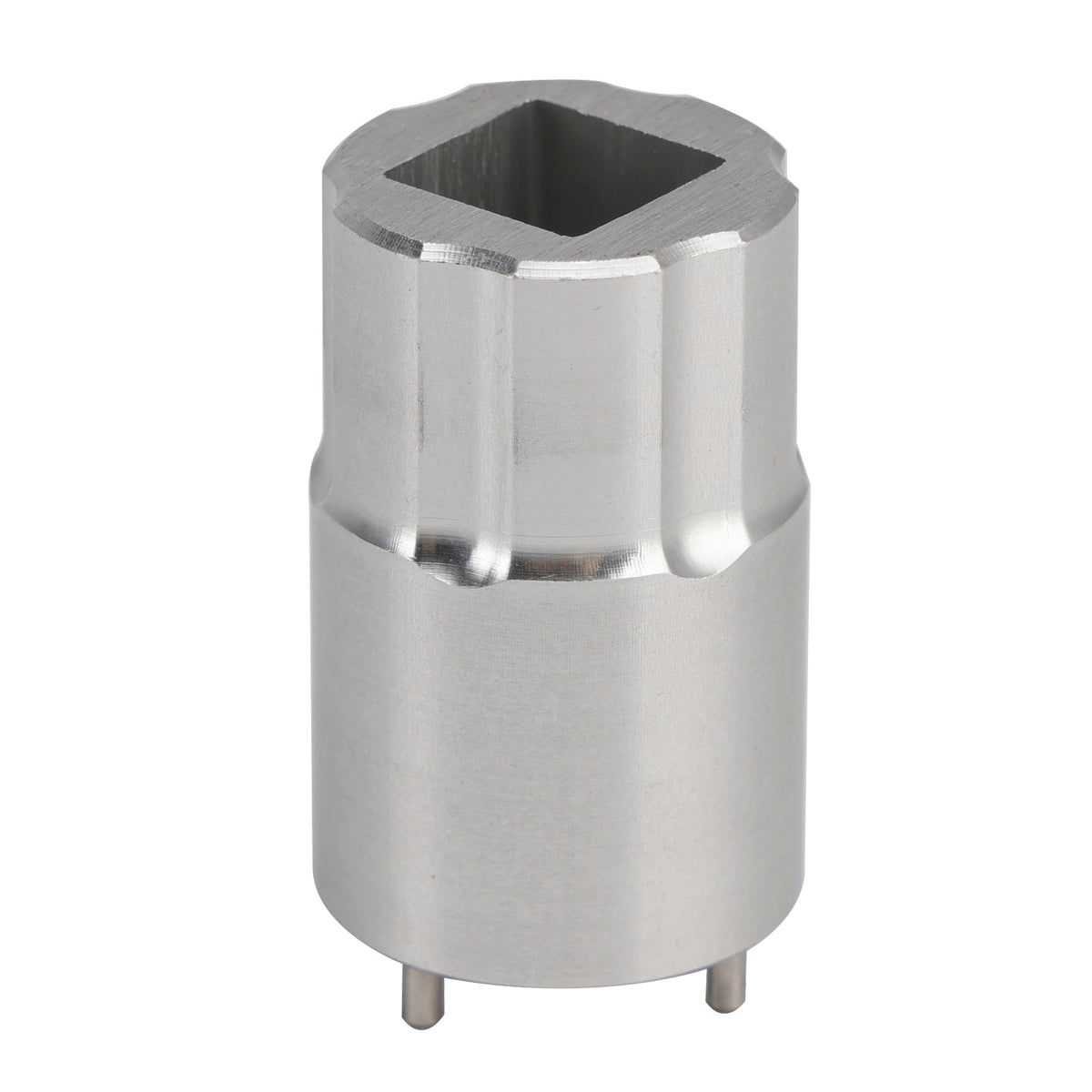 DPX2のベースバルブキャップを取り外すために使用します。FOX部品番号398-00-763と同じ形状です。硬化鋼製のピンと3/8インチ四角ドライブを備えています。また、油が付着した際に滑りにくくするために、側面にノッチを追加しました。