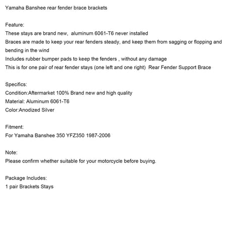 1987-2006 ヤマハ バンシー 350 YFZ350 ビレット リアフェンダー ブレース ブラケット ステー