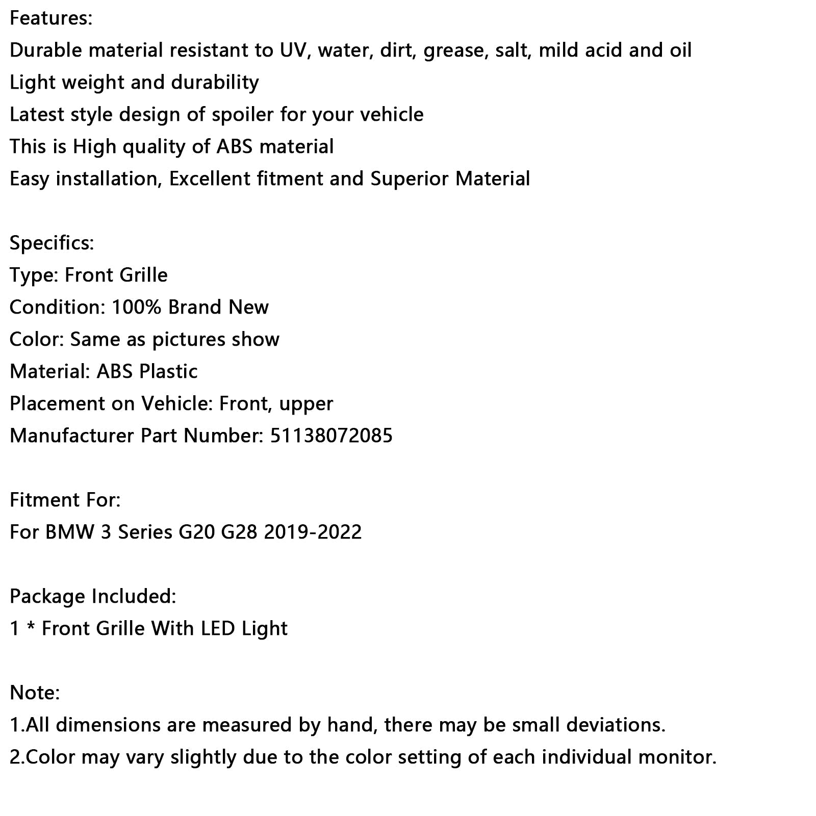 ブラックダイヤモンド キドニーグリルグリル 51138072085 BMW 3シリーズ G20 2019-2022に適合