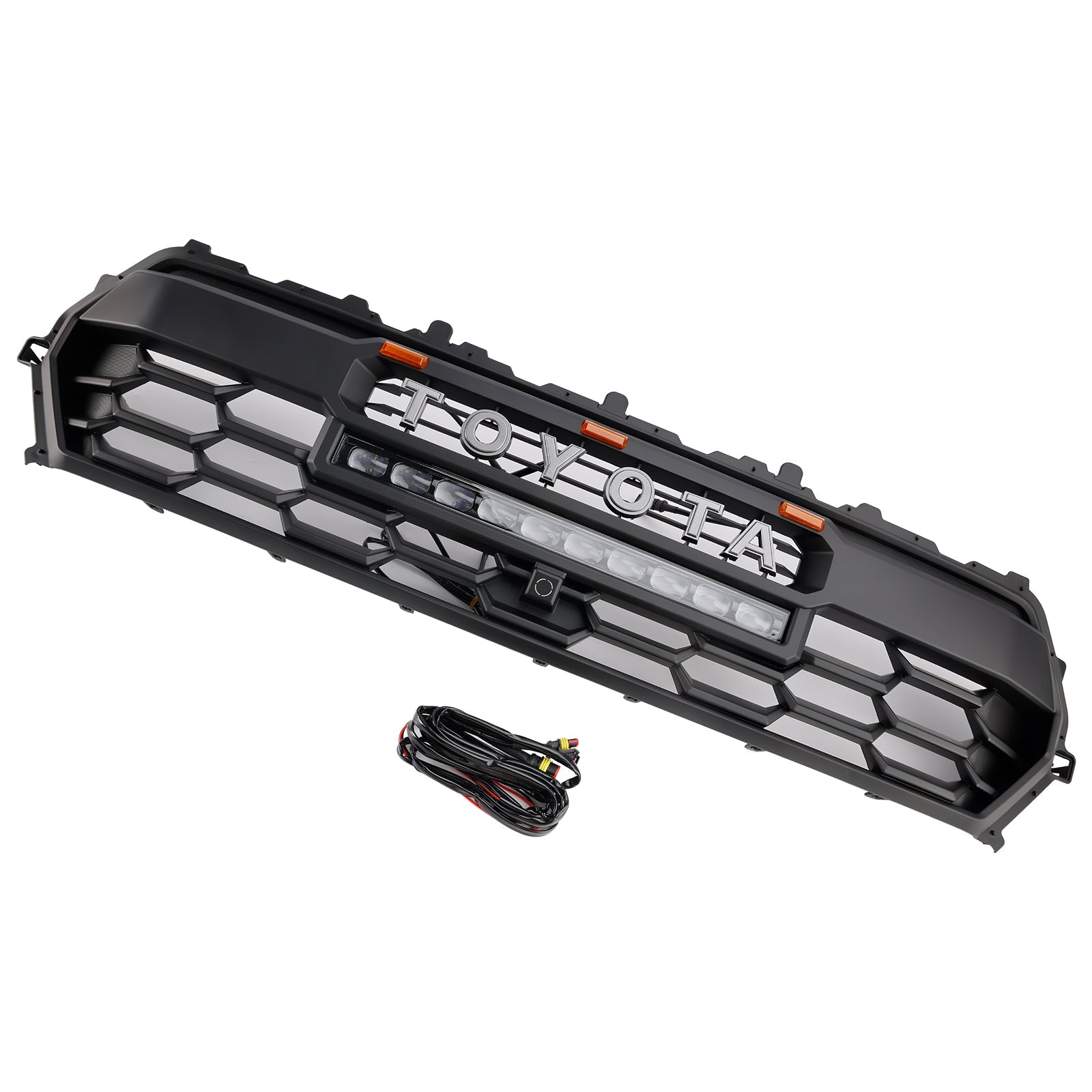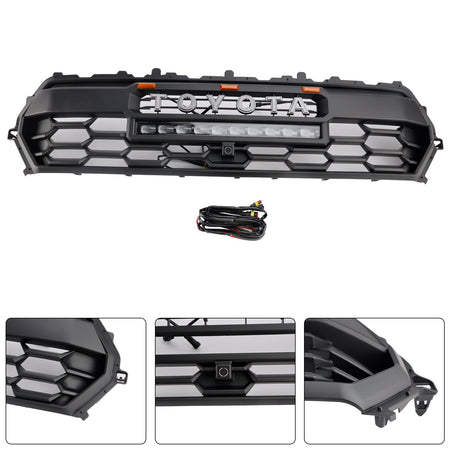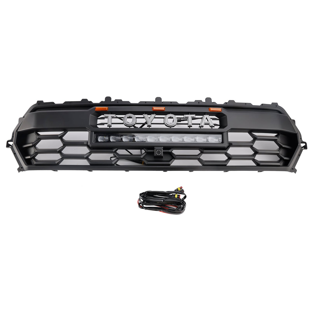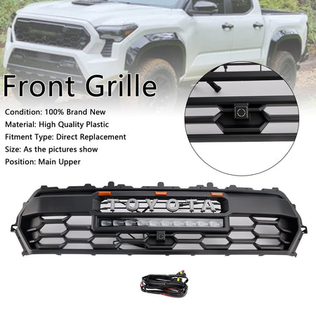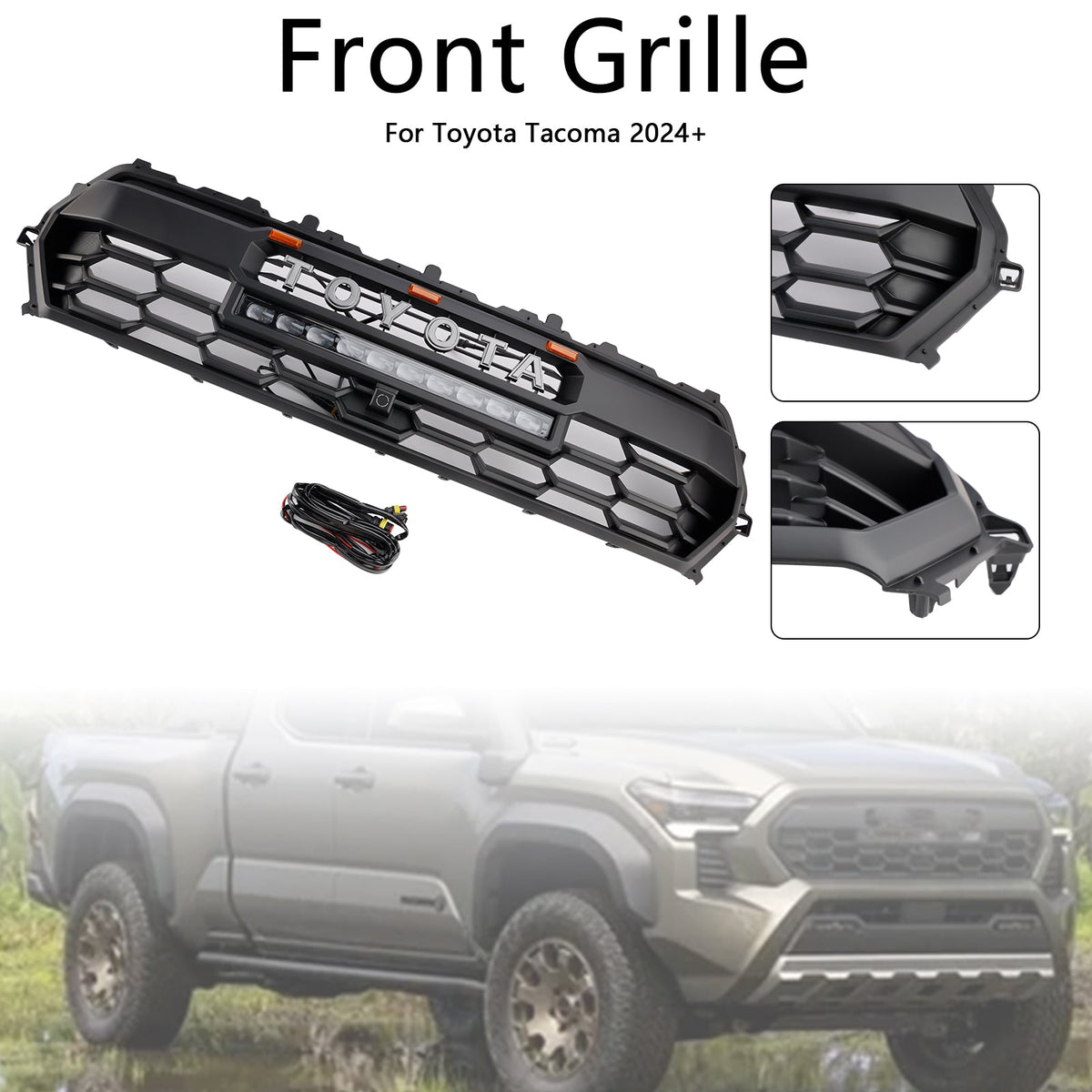 ブラック フロント バンパー グリル グリル トヨタ タコマ 2024+ LED ライトバー付き