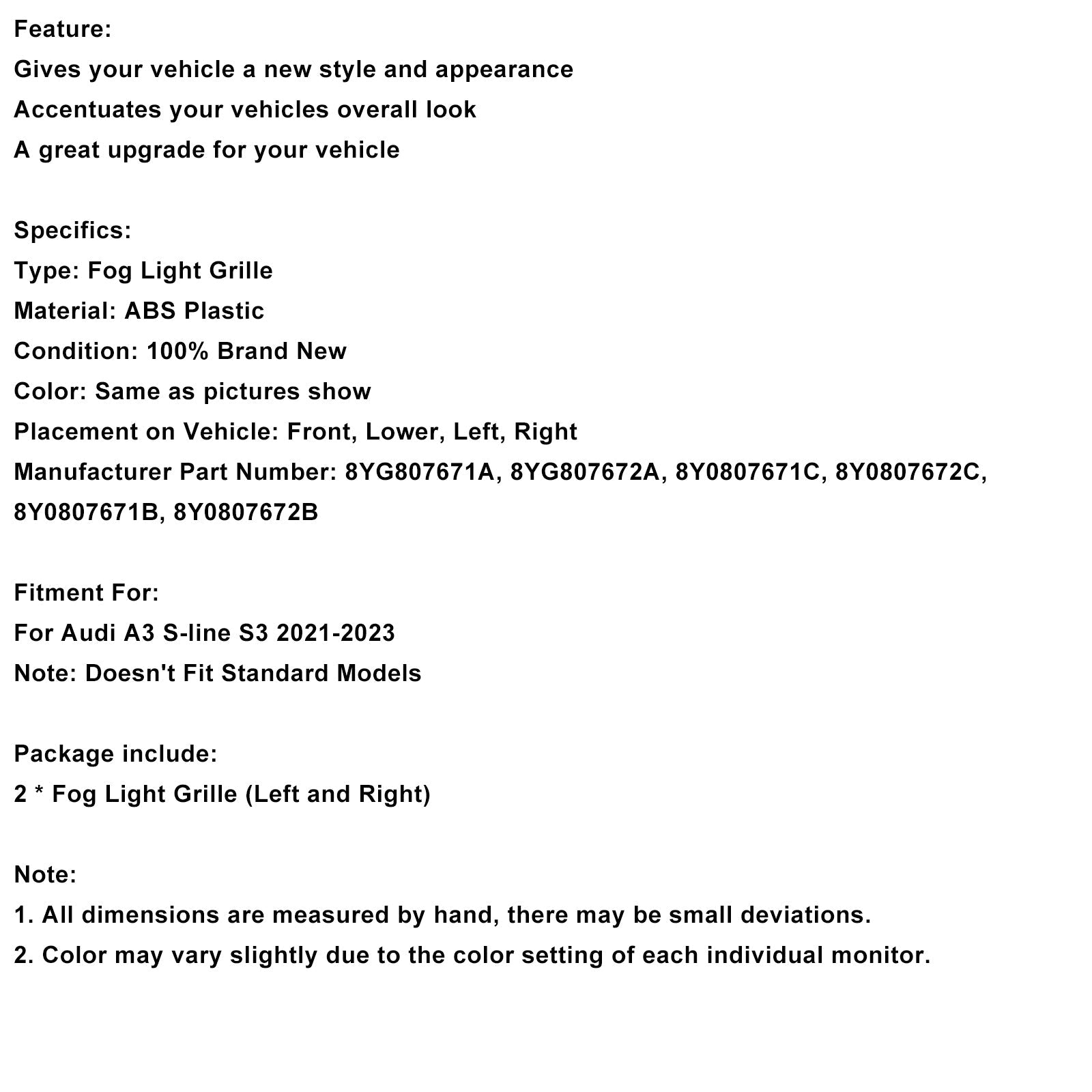 アウディ A3 S-line 2021-2023 に適合するブラックフロントハニカムフォグランプグリルカバー