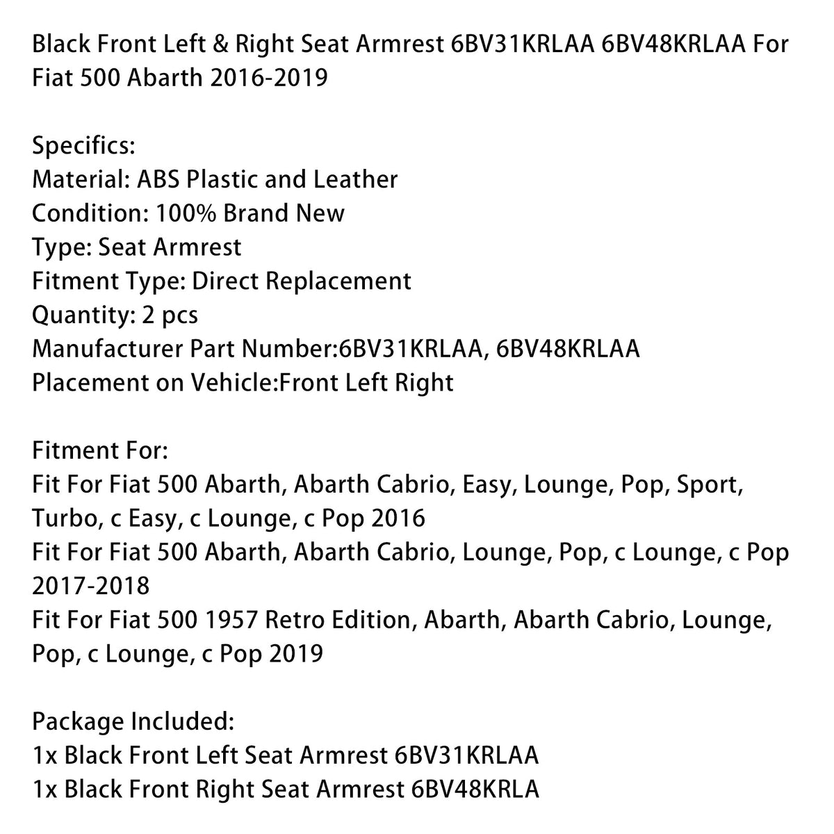 ブラックフロント左&右シートアームレスト 6BV31KRLAA 6BV48KRLAA フィアット 500 アバルト 2016-2019用