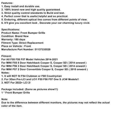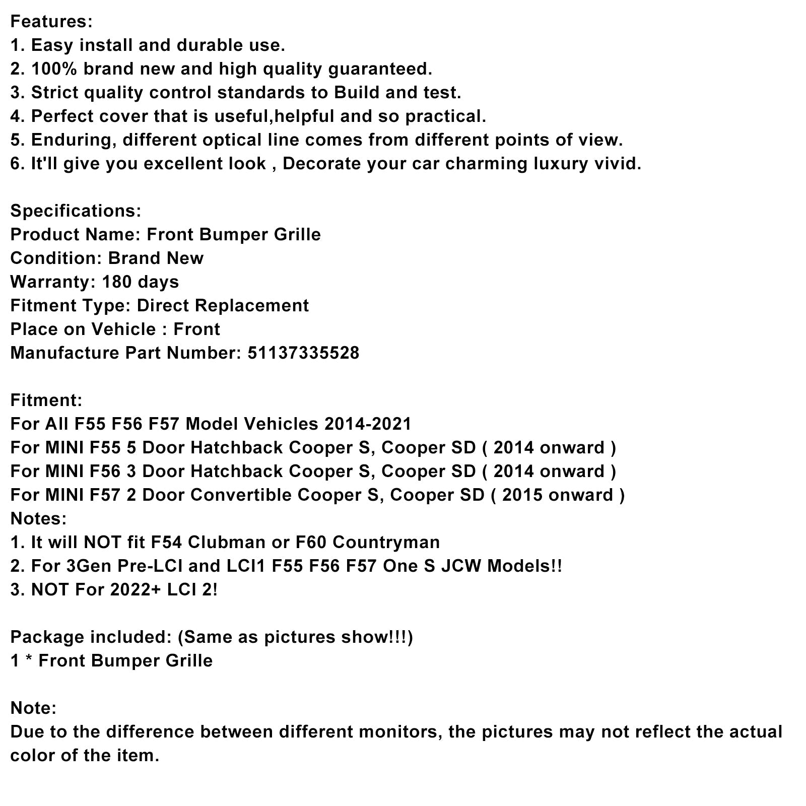 ブラックフロントメッシュグリル グリル 51137335528 ミニクーパー F55 F56 F57 2014-2021に適合