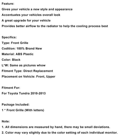 ブラックハニカムフロントバンパーグリル トヨタ タンドラ 2010-2013 TRD PROに適合