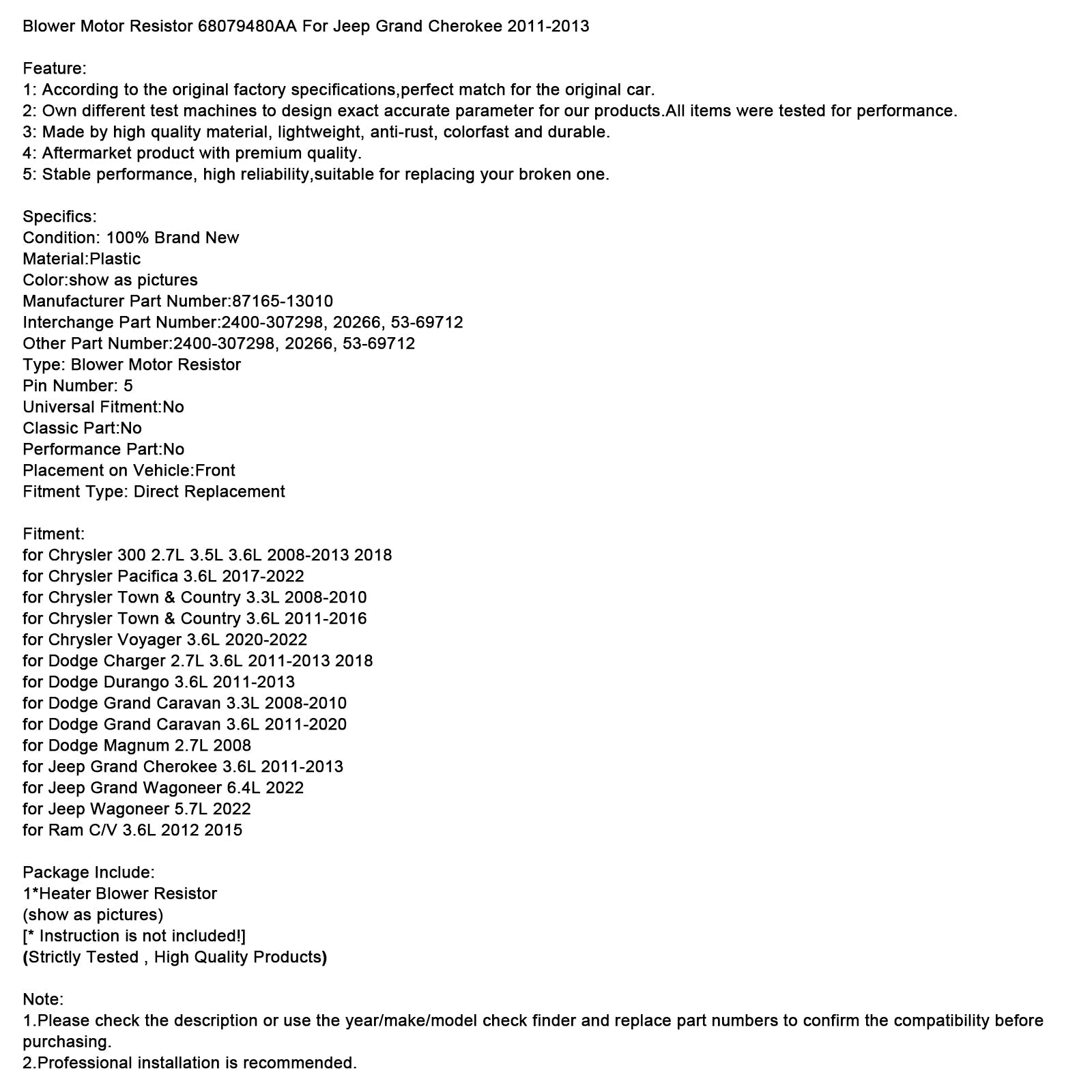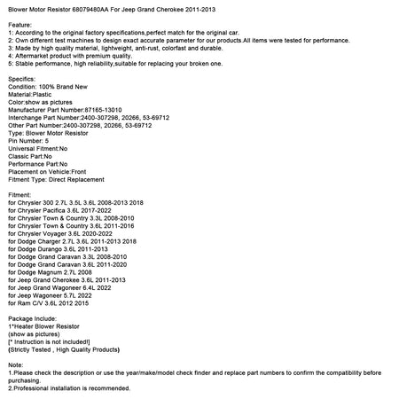 ブロワーモーター抵抗器 68079480AA ジープ グランドチェロキー 2011-2013用