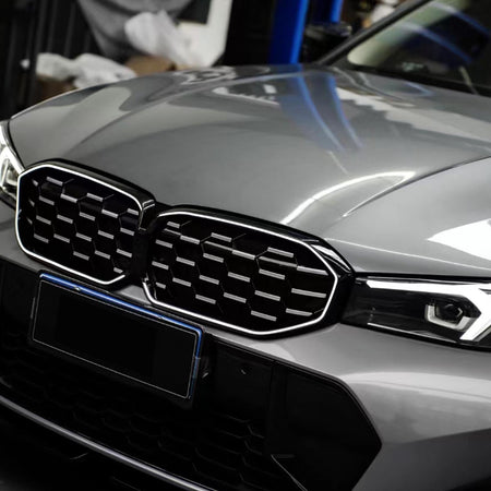 BMW 3シリーズ G20 G28 2023-2024 ダイヤモンドブラックシルバーフロントキドニーグリルメッシュ