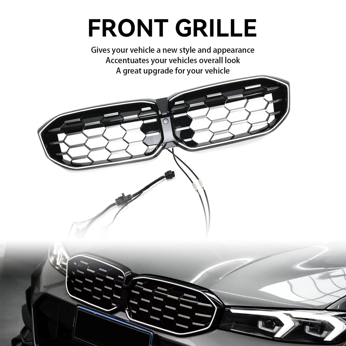 2023-2024 BMW 3シリーズ G20 G28 ダイヤモンドブラックシルバーフロントキドニーグリルメッシュ