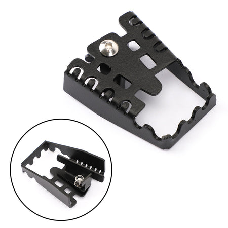 この機械加工されたステンレス鋼プレートは、改造の必要なしにリアブレーキペダルにボルトで固定するだけです。